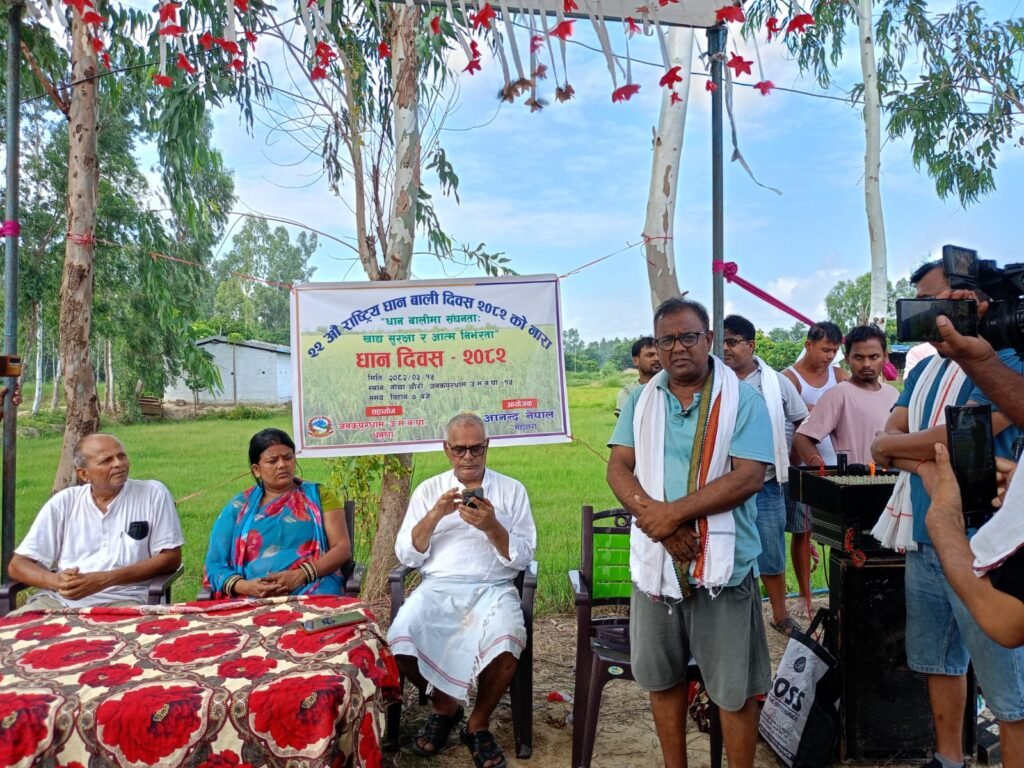 अपने अध्यक्षीय भाषण में जनकपुरधाम के मेयर मनोज कुमार साह ने कहा कि सरकार अगर समय पर खाद-बीज तथा सिंचाई का समुचित प्रबंध कर दे, तो हम धान का हम फिर निर्यात करेंगे। उन्होंने कमला नदी की पानी को जनकपुरधाम तक लाने के लिए सरकार प्रयास करें।कृषि बिज्ञ ने धान उत्पादन में हो रही समस्या तथा निधान पर विस्तार से प्रकाश डाला। आनंद नेपाल महोतरी द्वारा आयोजित तथा जनकपुरधाम उप महानगरपालिका के सहयोग में संपन्न 22वां राष्ट्रीय धान दिवस के अवसर पर बड़ी संख्या में किसान तथा बुद्धिजीवी उपस्थित थे।