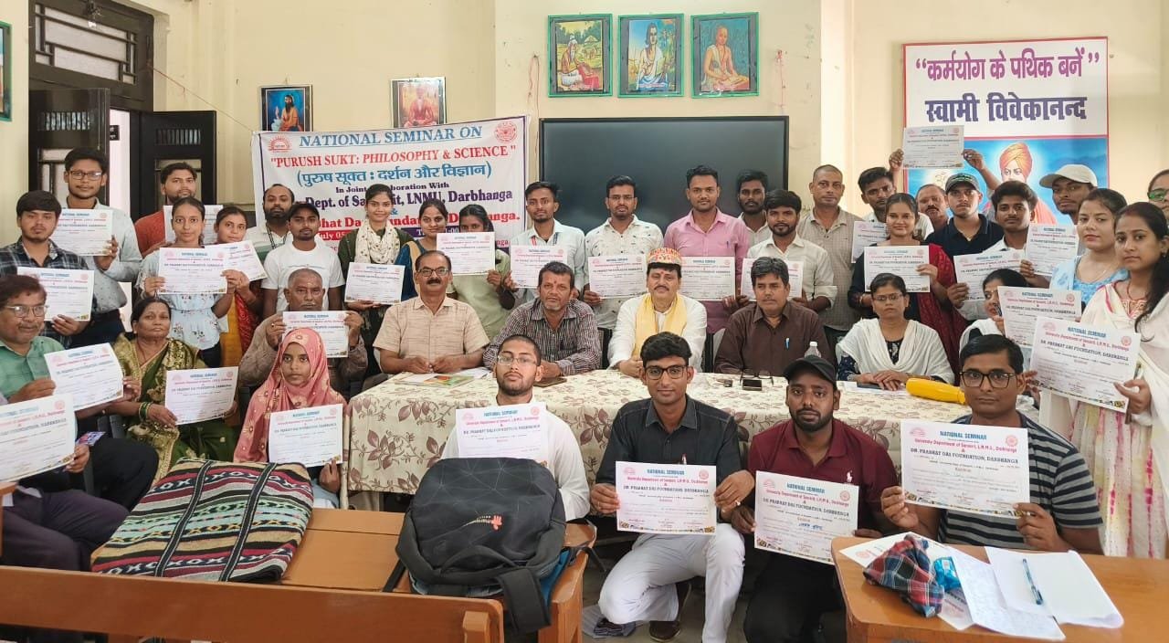 ऋग्वेद का पुरुष सूक्त दार्शनिक एवं वैज्ञानिक परिपेक्ष्य में अत्यंत ही महत्वपूर्ण एवं वेदों का सार तत्व है। यह पुरुष ही परमपुरुष, आदिपुरुष, परब्रह्म या परमेश्वर है जो माया- मोह तथा लोभ-भय आदि से मुक्त निर्लिप्त भाव से सर्वत्र व्याप्त है। यह अधिकांश दर्शनों एवं कई वैज्ञानिक सिद्धांतों का आधार है। यह परम पुरुष मोक्ष दाता है, जो सबके हृदय में वास करता है। उक्त बातें कामेश्वर सिंह दरभंगा संस्कृत विश्वविद्यालय के पूर्व वेद विभागाध्यक्ष डॉ विनय कुमार मिश्र ने ललित नारायण मिथिला विश्वविद्यालय, दरभंगा के विश्वविद्यालय संस्कृत विभाग तथा डॉ प्रभात दास फाउंडेशन के संयुक्त तत्वावधान में पीजी संस्कृत विभाग में “पुरुषसूक्त : दर्शन और विज्ञान” विषयक राष्ट्रीय सेमिनार में मुख्य अतिथि के रूप में कही। उन्होंने सेमिनार के विषय को प्रासंगिक एवं शोध के लिए अति गंभीर बताते हुए कहा कि पुरुषसूक्त से प्रेरणा पाकर ही कपिल ने शांख्यदर्शन का प्रणयन किया। पुरुष शांत भाव से रहता है, पर उसकी उपस्थिति मात्र से ही ऊर्जा का संचार होता है। डॉ मिश्र ने ब्रह्मांड की उत्पत्ति के निर्मित्त, उपादान एवं सामान्य करणों को विस्तार से बताते हुए कहा कि प्रकृति उपादान कारण, परमात्मा निमित्त कारण तथा अन्य सभी साधन सामान्य कारण हैं।