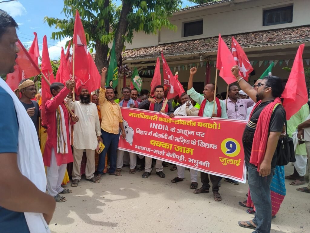 9 जुलाई को देशव्यापी “मताधिकार बचाओ-लोकतंत्र बचाओ” आंदोलन के तहत मधुबनी जिला के बेनीपट्टी प्रखंड में इंडिया गठबंधन और भाकपा-माले के संयुक्त आह्वान पर ज़ोरदार चक्का जाम किया गया।