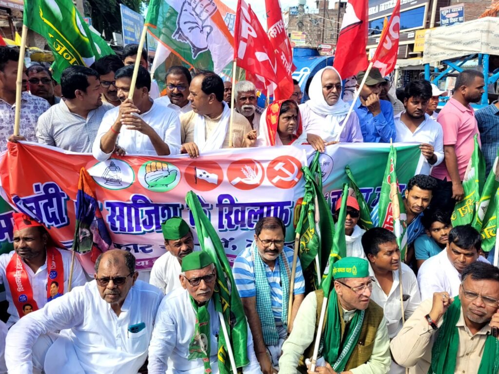 ट्रेड यूनियन के हड़ताल के समर्थन और बिहार में भारत निर्वाचन आयोग के द्वारा चलाए जा रहे मतदाता सूची गहन पुनरीक्षण अभियान के खिलाफ बुधवार को इंडिया गठबंधन समन्वय समिति के द्वारा बुधवार को सड़क जाम व रेल रोककर विरोध प्रदर्शन किया।