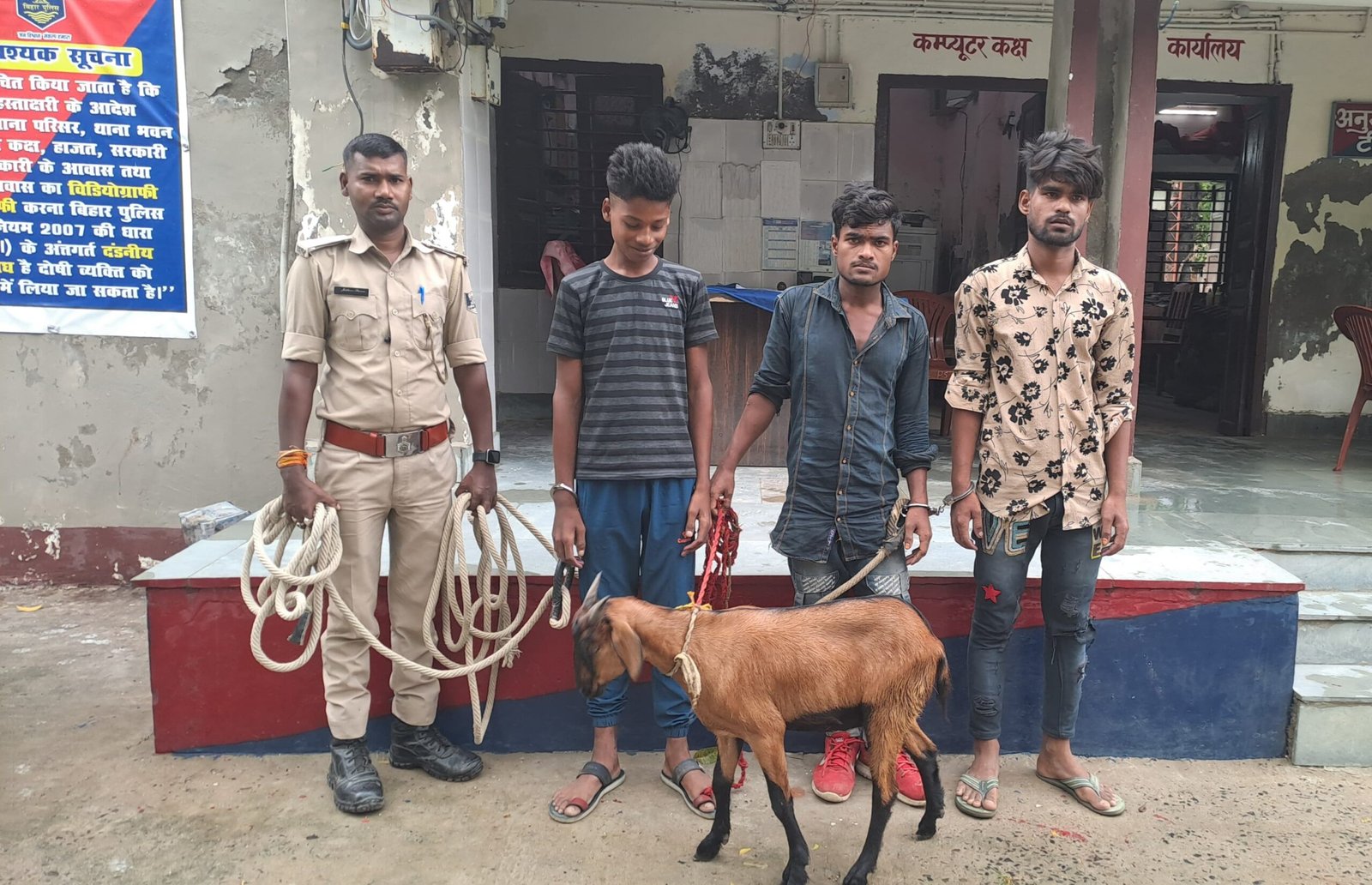 मधुबनी जिले के मधेपुर प्रखंड के भेजा थाना क्षेत्र स्थित दलदल गांव से बकरी (खस्सी) चोरी कर भाग रहे बाइक सवार चोरों को ग्रामीणों ने खदेड़ते हुए मधेपुर थाना क्षेत्र अंतर्गत भीठ भगवानपुर गांव के पासी चौक पर दबोच लिया। तत्काल इस घटना की सूचना ग्रामीणों द्वारा मधेपुर थाना पुलिस को दी गई। सूचना पर त्वरित कारवाई करते हुए पुलिस मौके पर पहुंची और चोरी की बकरी (खस्सी) को कब्जे में लेते हुए चोरी में उपयोग की जाने वाली बाइक को जब्त कर लिया, साथ ही बकरी चोरी में शामिल तीन युवकों बकरी चोर को गिरफ्तार कर लिया। गिरफ्तार बकरी चोरों की पहचान भेजा थाना क्षेत्र के खजुरी गांव निवासी 21वर्षीय मो. साबीर शाह एवं 18वर्षीय अजय कुमार शर्मा तथा मधेपुर थाना क्षेत्र के पीपरा गांव निवासी 20वर्षीय मो. शमशाद के रूप में की गई है। बकरी चोरी की इस घटना को लेकर दलदल गांव निवासी रामप्रसाद चौपाल ने मधेपुर थाना में प्राथमिकी दर्ज कराई है। प्राथमिकी में घर निकट के खेत से दोपहर में बकरी चोरी कर लेने की बात कही गई है।