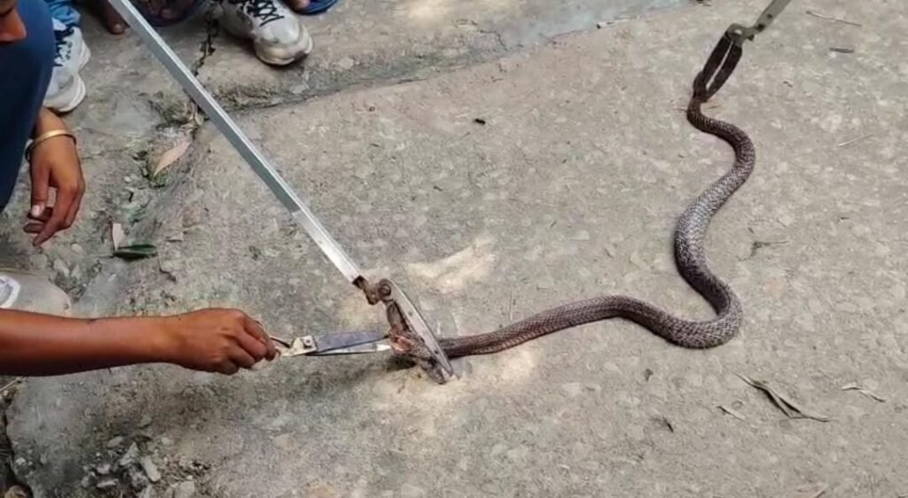 कैमूर जिले के दुर्गावती प्रखंड क्षेत्र अंतर्गत अटरिया गांव में अहले सुबह ग्रामीणों की सूचना पर पहुंची वन विभाग की रेंजर्स टीम ने एक जहरीले सर्प को जिंदा व सकुशल रेस्क्यू कर जंगल में छोड़ने के लिए अपने साथ ले गए। मिली जानकारी के अनुसार अटरिया गांव के रहने वाले ग्रामीण नंदलाल गोंड के दरवाजा के बाहर एक जाल में फंसा हुआ जहरीला सर्प दिखाई दिया। वहीं सर्प देखने के बाद नंदलाल गोंड ने सावधानी बरतते हुए वन विभाग को फोन कर जानकारी दी। सूचना मिलने के बाद आधे घंटे के भीतर ही वन रेंजर्स की टीम अटरिया गांव पहुंची, जहां जहरीला सर्प को जिंदा व सकुशल रेस्क्यू कर जंगल में छोड़ने के लिए अपने साथ ले गई। इधर सर्प को देखने के लिए गांव के लोग भी काफी संख्या में इकट्ठा हो गए थे। ग्रामीण नंदलाल गोंड ने बताया कि पिछले वर्ष भी सावन के महीना में दो सर्प को रेस्क्यू करवाया गया था और इस वर्ष भी सावन महीना में हीं घर के बाहर सर्प दिखाई दिया जिसको वन रेंजर्स की टीम बुलाकर रेस्क्यू करवाया है।