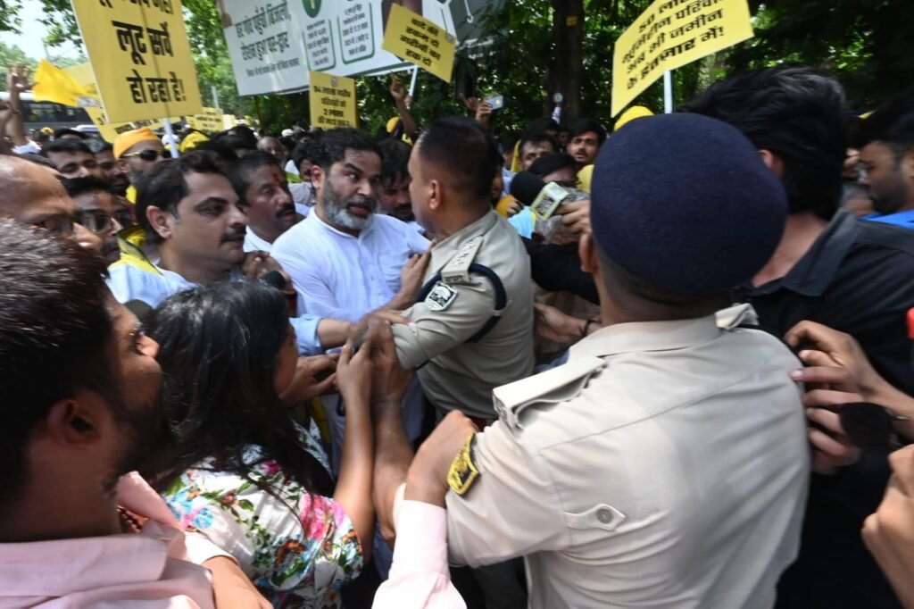 इसके बाद पुलिस ने फिर रोकने को कोशिश की तो प्रशांत किशोर समेत हजारों कार्यकर्ता सड़क पर ही धरने पर बैठ गए। काफी देर तक पुलिस ने कार्यकर्ताओं को हटाने की कोशिश की। इस दौरान पटना पुलिस ने जन सुराज के निहत्थे कार्यकर्ताओं पर लाठीचार्ज भी कर दिया। लाठीचार्ज में कई समर्थकों को गंभीर चोट लगी। कई के सिर फूटे। कई कार्यकर्ता पुलिस से धक्का-मुक्की में घायल भी हुए।
