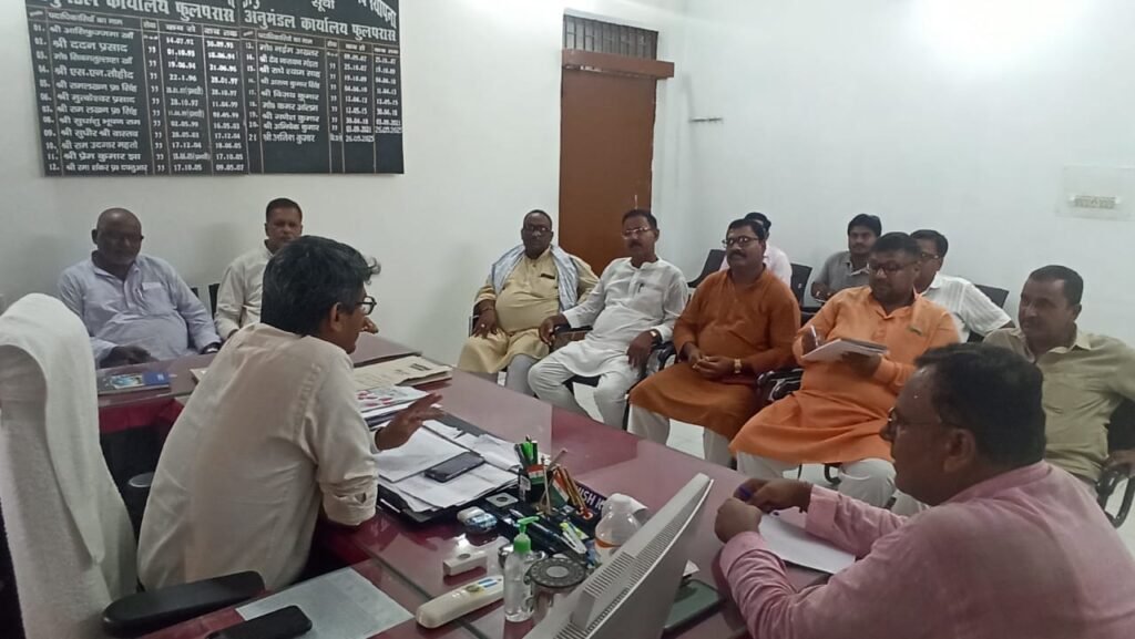 बैठक में एसडीओ अनीश कुमार एवं डीसीएलआर आनंद उत्सव ने वर्तमान में चल रहे विशेष गहन पुनरीक्षण कार्य का जायजा लिया और मतदाता सूची विषेश गहन पूनरीक्षण कार्यों की चर्चाएं की गई। बैठक में उपस्थित जनप्रतिनिधियों को निर्वाचकों द्वारा भरे गए गणना प्रपत्र की जानकारी देते हुए बताया कि वैसे मतदाता जिनके द्वारा अभी तक गणना प्रपत्र नहीं जमा किए गए हैं, उनकी सूची उपलब्ध कराते हुए उनसे प्रपत्र जमा करवाने हेतु अपने स्तर से प्रयास करने का अनुरोध किया गया।