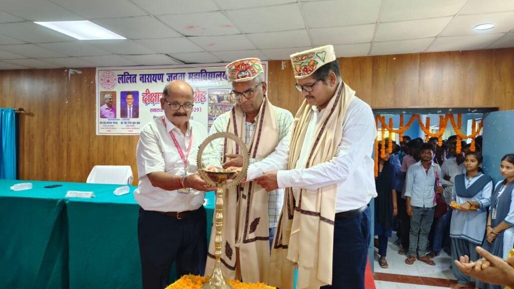 मधुबनी जिले के झंझारपुर अनुमंडल मुख्यालय स्थित ललित नारायण जनता महाविद्यालय के सभागार में नव नामांकित छात्र-छात्राओं (सत्र 2025-29) के लिए दीक्षारंभ समारोह का आयोजन किया गया। समारोह की अध्यक्षता महाविद्यालय के प्रधानाचार्य प्रो. (डॉ.) नारायण झा ने की। अपने अध्यक्षीय उद्बोधन में उन्होंने छात्रों को वर्ग में नियमित उपस्थित होने के लिए प्रेरित किया। सभागार में छात्राओं के विशाल समूह को देखकर नारी सशक्तिकरण की सराहना की।