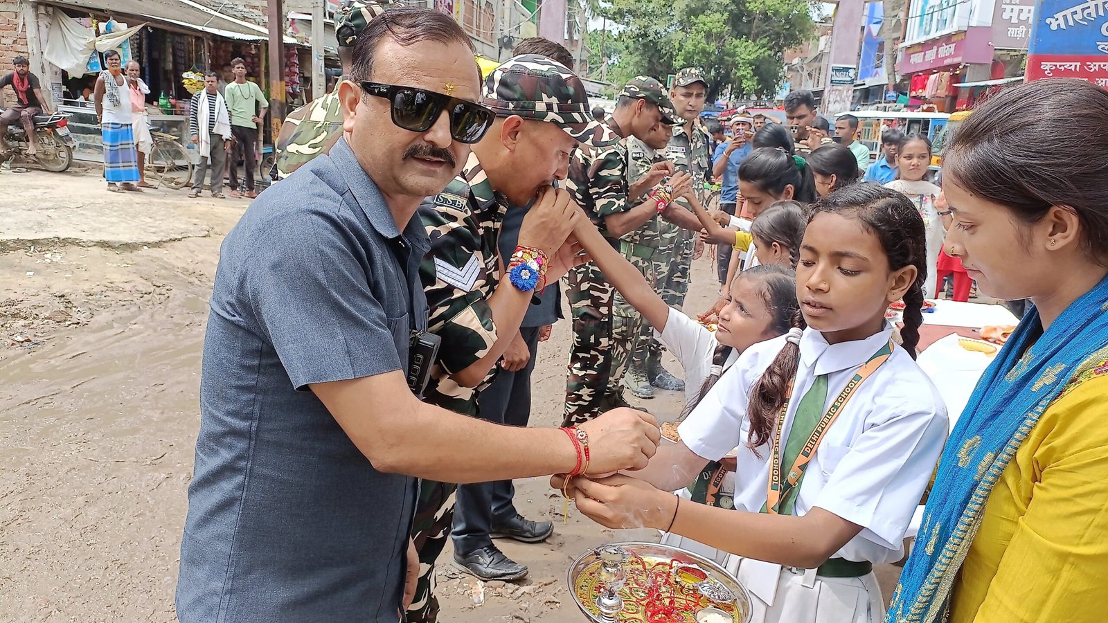 भारत-नेपाल सीमा स्थित जिले के लौकहा एसएसबी चेकपोस्ट पर शुक्रवार की सुबह रक्षाबंधन के अवसर पर स्कूली बच्चियों ने सीमा सुरक्षा बल के जवानों को रक्षा सूत्र बांधकर उनके प्रति सम्मान और भाईचारे का संदेश दिया। निजी विद्यालय की दर्जनों छात्राएं अपने शिक्षकों के साथ चेकपोस्ट पहुंचीं और परंपरागत तरीके से जवानों को राखी बांधी। इस दौरान बच्चियों ने जवानों के ललाट पर तिलक लगाकर मिठाई खिलाई और उनकी लंबी उम्र व सुरक्षा की कामना की। एसएसबी के जवानों ने भी इस गेस्चर से भावुक होकर बच्चियों का आशीर्वाद दिया और देश की सुरक्षा के प्रति अपनी प्रतिबद्धता दोहराई। उन्होंने कहा कि सीमा पर तैनात रहकर वे सिर्फ देश की सीमाओं की रक्षा ही नहीं करते, बल्कि यहां के लोगों की सुरक्षा और भरोसे को भी कायम रखते हैं। मौके पर मौजूद एसएसबी के अधिकारियों ने बताया कि ऐसे अवसर सैनिकों को घर-परिवार की याद तो दिलाते हैं, लेकिन साथ ही उन्हें यह एहसास भी कराते हैं कि पूरा देश उनका परिवार है।