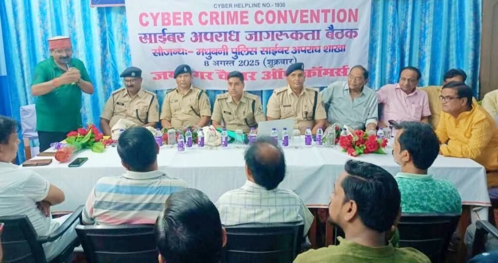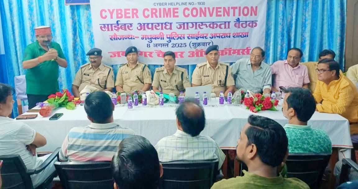मधुबनी जिला के जयनगर के कमला रोड स्थित जयनगर चेंबर ऑफ कॉमर्स के सभागार में पुलिस अधीक्षक योगेंद्र कुमार के दिशा निर्देश में पुलिस उपाधीक्षक, साइबर,मधुबनी के अंकुर कुमार एवं उनकी साईबर टीम द्वारा साइबर क्राइम जागरूकता अभियान के तहत व्यापारियों के साथ बैठक आयोजित की गई।