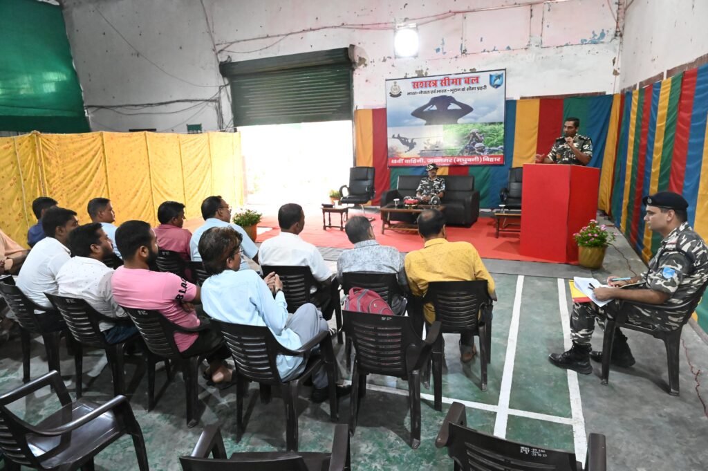 जयनगर अनुमंडल के एसएसबी मुख्यालय में गुरुवार की सुबह सशस्त्र सीमा बल की तरफ से औपचारिक मुलाकात का आयोजन किया गया। इस बैठक की अध्यक्षता कार्यवाहक कमांडेंट हरेंद्र सिंह, द्वितीय कमान अधिकारी के द्वारा की गई। इस अवसर पर उप कमांडेंट विवेक ओझा, (प्रचार अधिकारी) तथा सहायक उप निरीक्षक (संचार) महेंद्र सिंह तोमर भी उपस्थित रहे। भारत-नेपाल से सटे मधुबनी जिले के जयनगर और नेपाल (देश) के सिरहा जिला से विभिन्न समाचार पत्र, न्यूज चैनल एवं ऑनलाइन मीडिया से जुड़े वरिष्ठ पत्रकार एवं प्रतिनिधि बैठक में शामिल हुए। बैठक के दौरान चाय पर आपसी संवाद के बीच सीमा क्षेत्र की सुरक्षा, जन-जागरूकता, अपराध नियंत्रण, सूचनाओं के आदान- प्रदान एवं आपसी सहयोग जैसे विषयों के साथ- साथ सीमा पर नारकोटिक्स तस्करी, नशा मुक्ति अभियान, ह्यूमन ट्रैफिकिंग जैसे गंभीर मुद्दों पर विस्तार पूर्वक से चर्चा की गई। साथ ही, बिहार में आगामी विधानसभा चुनाव 2025 के दौरान असामाजिक तत्वों की गतिविधियों एवं अफवाहों पर प्रभावी नियंत्रण के लिए मीडिया और सुरक्षा बलों के आपसी समन्वय पर भी विशेष विचार- विमर्श हुआ। बैठक के दौरान उप कमांडेंट विवेक ओझा, (प्रचार अधिकारी) ने मीडिया की सराहना करते हुए कहा कि “मीडिया लोकतंत्र का चौथा स्तंभ है, जो समाज में पारदर्शिता और जागरूकता बनाए रखने में अहम भूमिका निभाता है।” अंत में कार्यवाहक कमांडेंट महोदय ने सभी पत्रकारों को मिठाई भेंट कर स्वतंत्रता दिवस की अग्रिम शुभकामनाएं दीं तथा भविष्य में भी इसी प्रकार सहयोग बनाए रखने की अपेक्षा भी व्यक्त की।