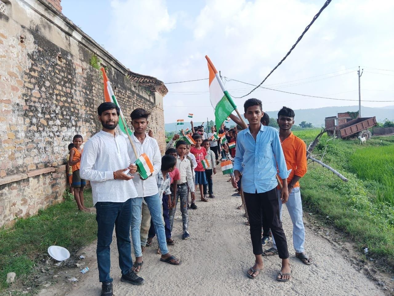 गुरुवार को हर घर तिरंगा अभियान के अंतर्गत चैनपुर प्रखंड के मेढ़, लखमनपुर, तेनौरा, डीहाँ, नाउडीह सहित आसपास के गांवों में स्थानीय लोगों के साथ भव्य रैली निकाली गई। इस अवसर पर ग्रामीणों को राष्ट्रीय ध्वज का वितरण किया गया। रैली के दौरान भारत माता की जय, हर घर तिरंगा, वंदे मातरम् और तिरंगे की शान जैसे राष्ट्रभक्ति के नारों से वातावरण गूंज उठा। कार्यक्रम का उद्देश्य लोगों में राष्ट्रीय एकता, सम्मान और देश प्रेम की भावना को प्रबल करना था।