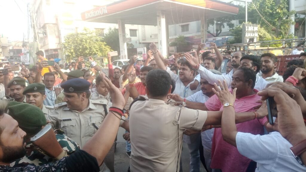 प्रधानमंत्री नरेंद्र मोदी को दरभंगा में कांग्रेस नेता मोहम्मद नौशाद के मंच से उनकी स्व. मां को गाली देने से भड़के भाजपा कार्यकर्ता शुक्रवार की शाम आरा में सड़कों पर उतर आए। आरा शहीद भवन कांग्रेस के दफ्तर के बाहर राहुल गांधी का पुतला दहन करने लगे, जिसके बाद वहां कांग्रेस के लोग पहुंच आए और दोनों के बीच झड़क हो गई और जमकर हंगामा हुआ। कांग्रेस के लोगों का कहना था कि पुलिस भाजपा की ओर से समर्थन कर रही थी और यह झड़प कारण बनी।