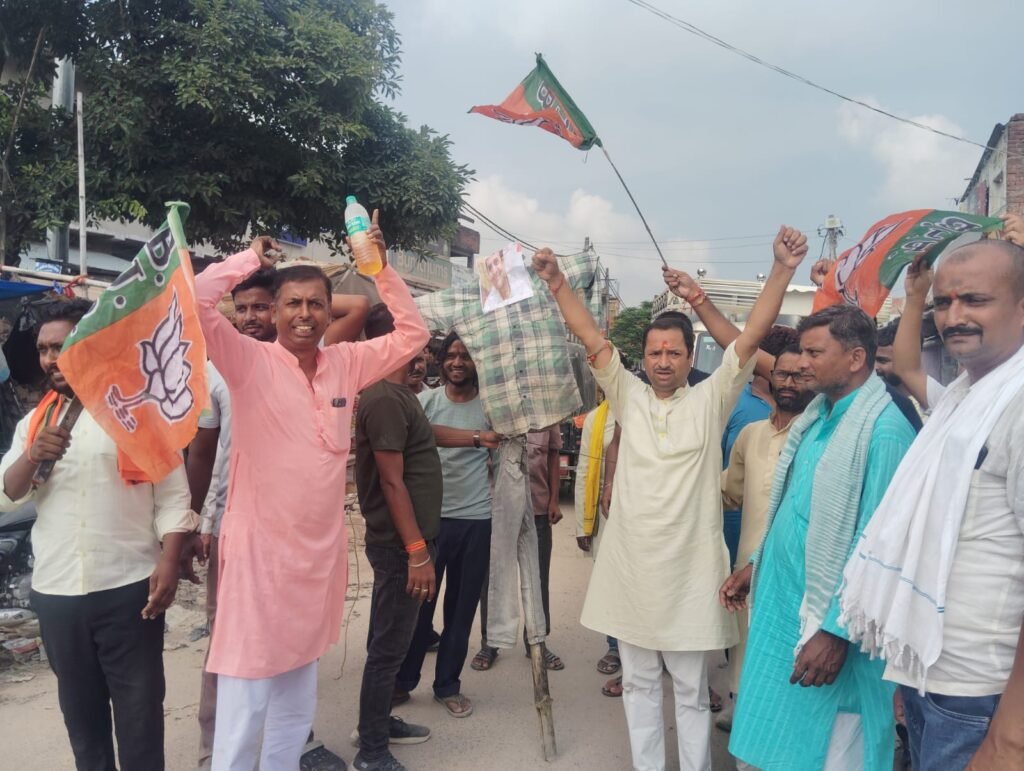 भाजपा कार्यकर्ताओं ने शनिवार को जिले के बाबूबरही में बाजार स्थित दुर्गा मंदिर के निकट मंडल अध्यक्ष रामचंद्र मिश्रा के नेतृत्य में राहुल गांधी का पुतला दहन किया।
