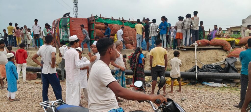 प्रत्यक्षदर्शीयों ने कहा कि यह घटना फिल्मी स्टाइल में हुआ। सुबह एनएच पर एक बकड़ी आ गई, जिसे बचाने के क्रम में चालक का संतुलन खो दिया और ट्रक सड़क पर ही पलट गई। इस दौरान सड़क किनारे सब्जी बेच रहे दुकानदार के समीप एक बच्चे एनएच से नीचे कूदकर अपनी जान बचाया।