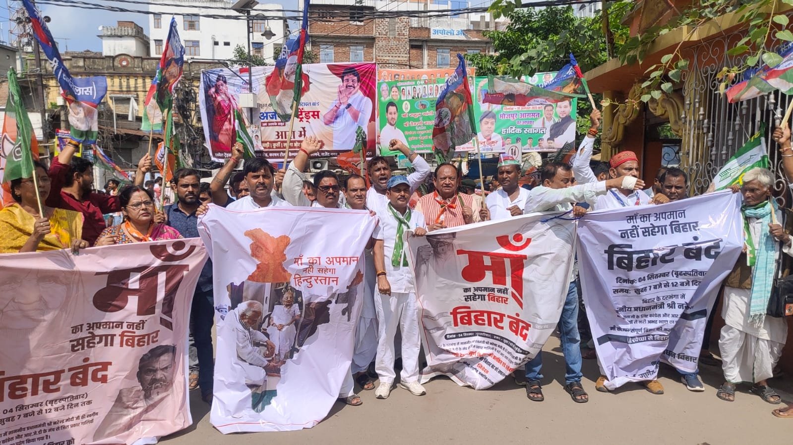 देश के प्रधानमंत्री नरेंद्र मोदी की स्वर्गवासी मां के खिलाफ अपमानजनक टिप्पणी के खिलाफ पूरे देश में भाजपा कार्यकर्ताओं में आक्रोश का माहौल है एवं इसको लेकर भाजपा कार्यकर्ता विपक्ष के नेता राहुल गांधी से माफी मांगने की बात पर अड़े हुए हैं। वही इसको लेकर आज राष्ट्रीय जनतांत्रिक गठबंधन के द्वारा बिहार बंद का ऐलान किया गया है जिसका असर सीधे तौर पर दिख रहा है। जहां सुबह से ही आरा शहर में भाजपा कार्यकर्ता सड़कों पर उतरकर जमकर नारेबाजी कर रहे हैं। वही इस दौरान भाजपा कार्यकर्ताओं ने आरा शहर के मठिया मोड़ के समीप सड़क को जाम कर दिया और विपक्षी नेताओं के खिलाफ जमकर नारेबाजी कर रहे हैं। इस दौरान एनडीए नेताओं ने कहा कि जिस तरह से देश के प्रधानमंत्री कि स्वर्गीय मां के खिलाफ अपमानजनक टिप्पणी की गई है। वह बर्दाश्त के लायक नहीं है और अगर राहुल गांधी माफी नहीं मांगते हैं तो इसके खिलाफ और बड़ा आंदोलन किया जाएगा। आंदोलन कार्यक्रम में लोजपा जिलाध्यक्ष राजेश्वर पासवान, राजे सिन्हा, मिथिलेश कुशवाहा, हरेन्द्र पांडेय, प्रहलाद राय, ज्योति कुशवाहा, संतोष चंद्रवंशी, नरेन्द्र तिवारी, संजय कुमार सिंह,अमरेन्द्र शक्रवार, विभु जैन, चुन्नी देवी, जीतु चौरसिया, धीरज सिंह, सुगंधा देवी, निशांत सिंह, मनीष गुप्ता, धर्मेंद्र सिंह, संतोष पांडेय, मनीष प्रभात, श्रीभगवान सिंह, रामप्रकाश पांडेय, विरेन्द्र कुमार, वरूण सिंह, राकेश सिंह, विजय सिंह, सहित सैकड़ो कार्यकर्ता शामिल थे।