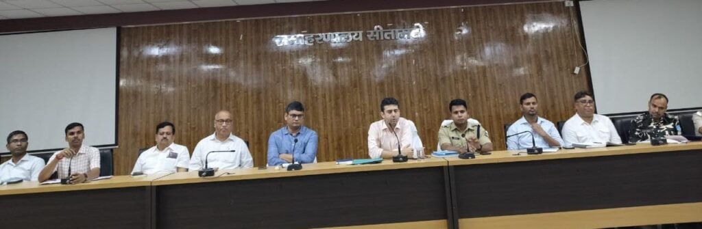 आगामी पर्व-त्यौहार और बिहार विधानसभा चुनाव के मद्देनज़र जिले में विधि-व्यवस्था को सुदृढ़ बनाने हेतु शनिवार को सीतामढ़ी जिला समाहरणालय स्थित परिचर्चा भवन में जिलाधिकारी रिची पांडेय और पुलिस अधीक्षक अमित रंजन की संयुक्त अध्यक्षता में उच्चस्तरीय बैठक आयोजित की गई। बैठक में सभी अनुमंडल पदाधिकारी और अनुमंडल पुलिस पदाधिकारी मौजूद रहे। बैठक के दौरान डीएम और एसपी ने साफ निर्देश दिया कि जिले में शांति, सौहार्द और कानून-व्यवस्था बनाए रखना सर्वोच्च प्राथमिकता होगी। इस दौरान उन्होंने अधिकारियों को सख्त लहजे में चेतावनी देते हुए कहा कि किसी भी स्तर पर लापरवाही बर्दाश्त नहीं की जाएगी।