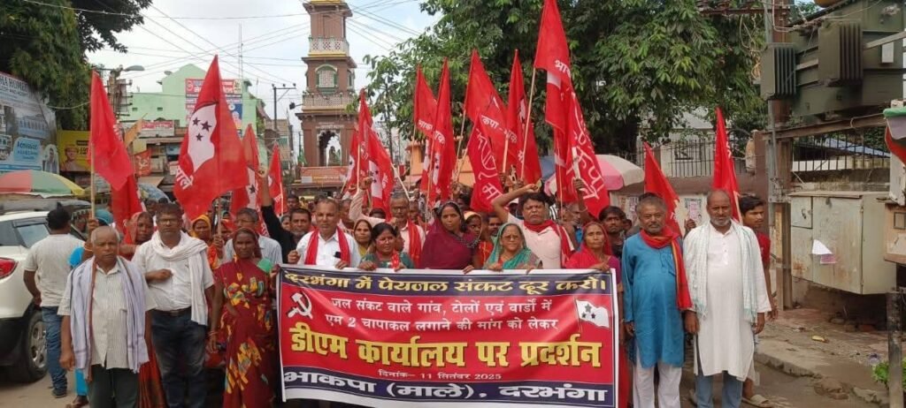 दरभंगा जिला को सुखाड़ ग्रस्त क्षेत्र घोषित करने, जिला बढ़ते जल संकट को हल करने, जरूरतमंद जगहों पर चापाकल देने सहित अन्य मांग को लेकर भाकपा(माले) के पूर्व घोषित कार्यक्रम के तहत आज गुरुवार को दरभंगा डीएम के समक्ष धरना प्रदर्शन किया गया। प्रदर्शन जुलुस पोलो मैदान से निकलकर समाहरणालय होते हुए लहेरियासराय टावर होते हुए पुन पोलो मैदान में आकर सभा में तब्दील हो गया।