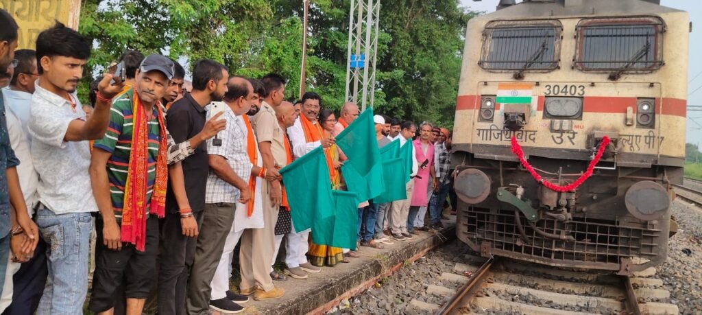 मधुबनी लोकसभा सांसद डॉo अशोक कुमार यादव ने मध्य पूर्व रेलवे के जोगियारा स्टेशन से शनिवार को अमृत भारत ट्रेन को हरी झंडी दिखाकर रवाना किया। स्थानीय लोगों ने अमृत भारत ट्रेन के इंजन एवं चालक को जोगियारा स्टेशन पहुंचने पर फूल-माला पहना कर भव्य स्वागत किया।