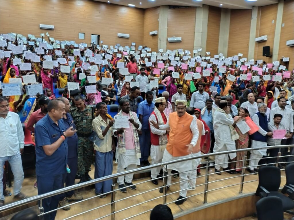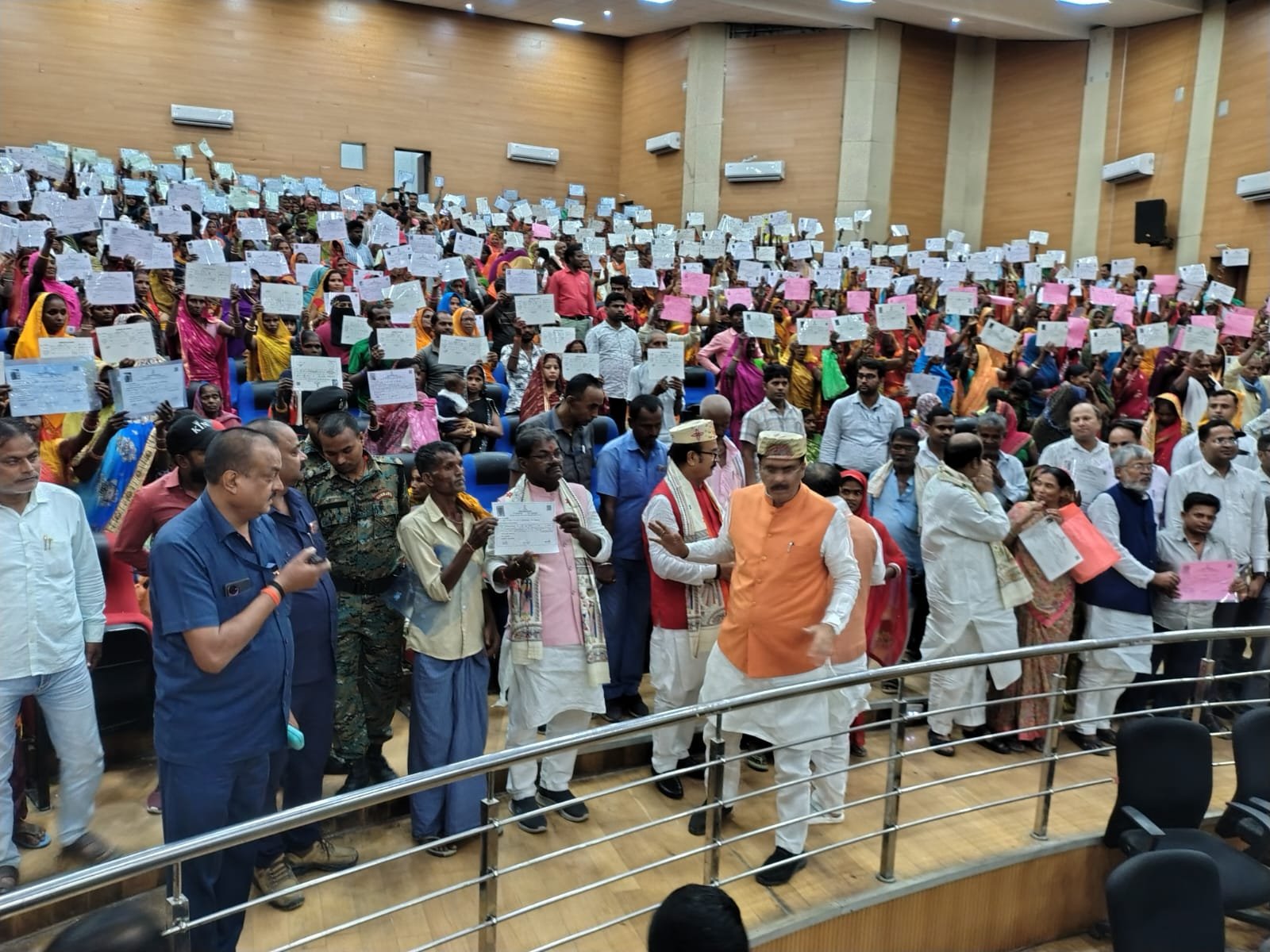 प्रेक्षागृह दरभंगा में बिहार सरकार राजस्व एवं भूमि सुधार विभाग के तत्वाधान में संजय सरावगी मंत्री राजस्व एवं भूमि सुधार विभाग बिहार सरकार,नगर विकास एवं आवास विभाग बिहार सरकार के मंत्री जीवेश कुमार, मंत्री मदन सहनी, सांसद डॉo गोपाल जी ठाकुर, विधायक हायाघाट रामचंद्र प्रसाद, विधायक अलीनगर मिश्री लाल यादव, विधायक केवटी मुरारी मोहन झा के कर कमलों से वासवहीन परिवारों को काफी संख्या में सदर अनुमंडल दरभंगा के वासीत नागरिकों को पर्चा वितरित किए गए।