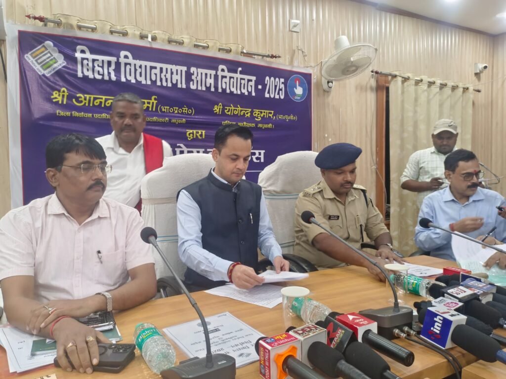 बिहार विधानसभा आम निर्वाचन 2025 से संबंधित सोमवार संध्या 7:00 बजे मधुबनी समाहरणालय सभागार में जिला निर्वाचन पदाधिकारी सह जिलाधिकारी आनन्द शर्मा एवं पुलिस अधीक्षक योगेन्द्र कुमार के द्वारा प्रेस वार्ता का आयोजन किया गया है।