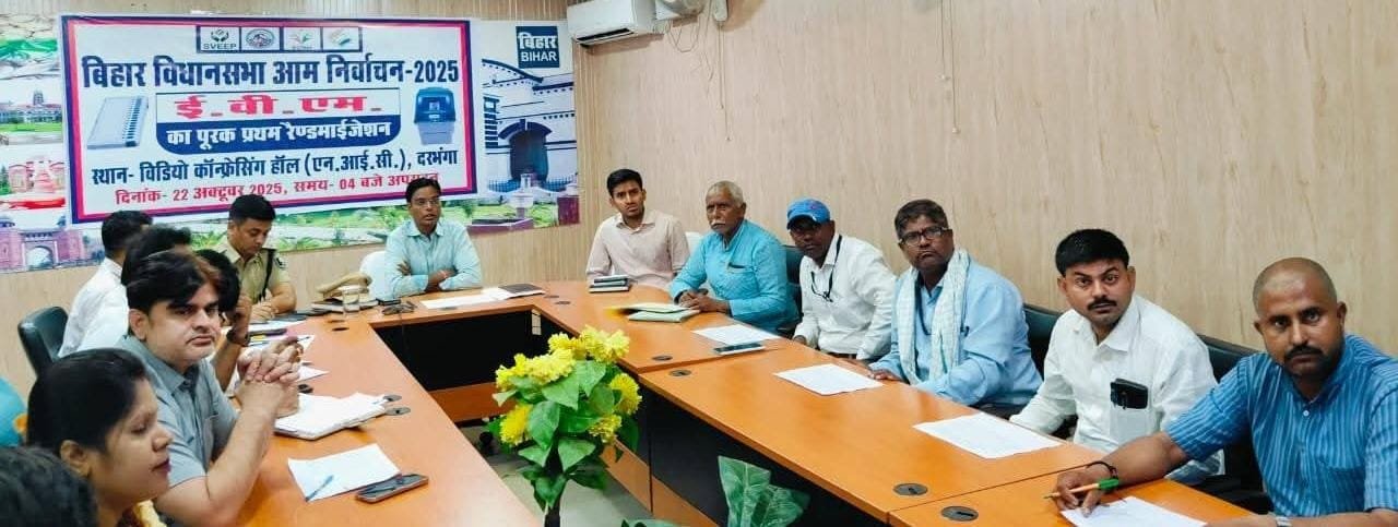 आसन्न बिहार विधानसभा आम निर्वाचन-2025 के सफल आयोजन को लेकर बुधवार को एनआईसी, दरभंगा में ईवीएम (इलेक्ट्रॉनिक वोटिंग मशीन) का पूरक प्रथम रेंडमाइजेशन जिला निर्वाचन पदाधिकारी-सह-जिला पदाधिकारी कौशल कुमार की अध्यक्षता में राजनीतिक पार्टियों के प्रतिनिधियों के समक्ष संपन्न किया गया। इस प्रक्रिया के अंतर्गत कुल 175 कंट्रोल यूनिट तथा 608 बैलट यूनिट का रेंडमाइजेशन किया गया, यह प्रक्रिया पूरी पारदर्शिता और निर्वाचन आयोग के निर्देशानुसार संपन्न की गई। निर्वाचन प्रक्रिया को सफल, निष्पक्ष एवं शांतिपूर्ण ढंग से संपन्न कराने हेतु जिला प्रशासन प्रतिबद्ध है।