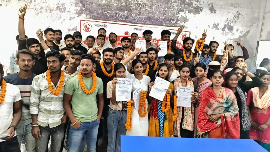 छात्र संघर्ष समिति अध्यक्ष संतोष यादव के डी.बी. कॉलेज, जयनगर में तेज तर्रार एवं मेधावी छात्र छात्राओं को संगठन के पदाधिकारी बनाकर मनोनयन पत्र दिया गया। डी.बी. कॉलेज,जयनगर में छात्र संघर्ष समिति के महाविद्यालय अध्यक्ष पद पर वेद प्रकाश यादव को मनोनीत किया गया एवं महाविद्यालय के संगठन प्रभारी पद पर आनन्द कुमार को मनोनीत किया गया। वहीं, उपाध्यक्ष पद पर राजा यादव, सरोज कुमार सहनी, पिंकी कुमारी, सृष्टि कुमारी, बादल कुमार, हर्ष कुमार साह, धीरज कुमार महतो, प्रवीण ठाकुर, सरोज कुमार राम, सुमंत कुमार, सुमन कुमार राय, दीपक कुमार यादव, सूरज कुमार राम, अभिषेक राय, दीपक पासवान, दीपक कुमार साह, मनीषा कुमारी, प्रमोद कुमार महतो, रूपेश कुमार सहनी, निक्की पूर्वे, अनुराग यादव को मनोनीत किया गया।महासचिव पद पर सत्येंद्र कुमार, श्याम सुंदर, सत्यम पूर्वे, मुनाजिर, सुमन शाह, सुमित यादव, ओम प्रकाश, पुरुषोत्तम कुमार, प्रशांत चौधरी, शुभम पूर्वे ,सत्यम कुमार शाह, आशीष सिंह, विवेक यादव, प्रशांत यादव, निशांत यादव, आयुष रुतियार, नीतीश कुमार सिंह, ज्योतिष भंडारी, भानु यादव, गोपाल कुमार, जय कुमार यादव, विशाल शाह, बिट्टू कुमार, रूपेश कुमार, कमलेश कुमार, मो0 साहिल को मनोनीत किया गया। महाविद्याय सचिव पद सुमन यादव, भवानी प्रताप, पिंटू यादव, राजा यादव, श्याम यादव, धीरज यादव, शिव कुमार, अमित यादव, अजीत शर्मा, सुमित कुमार, सूरज राय, शिवम शाह, पंकज कुमार, अभय शाह, कौशल झा को मनोनीत किया गया।बैठक में मुख्य रूप से छात्र संघर्ष समिति के संस्थापक सदस्य ब्रह्मदेव यादव , आर.के. कॉलेज छात्रसंघ अध्यक्ष राहुल पासवान, आर.के. कॉलेज छात्र संघ के पूर्व अध्यक्ष मिंटू कुमार यादव, जे.एन. कॉलेज छात्र संघ पूर्व अध्यक्ष किशन बाड़ी, आर.के. कॉलेज छात्र संघ उपाध्यक्ष मणिशंकर यादव, जे.एन. कॉलेज प्रभारी मुकेश कुमार यादव, विजय कुमार यादव राजीव कुशवाहा संजीव कुमार यादव, रंजीत कुमार यादव, राहुल पासवान सहित सैकड़ो छात्र-छात्राएं उपस्थित थे।