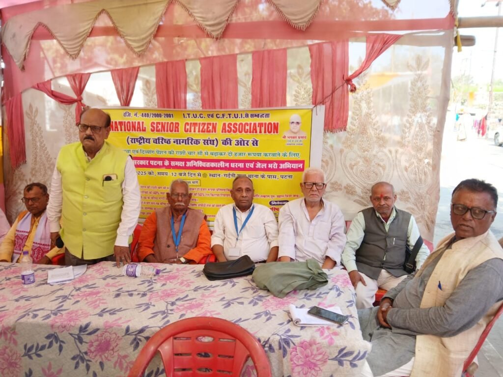 सीनियर सिटीजन को वृद्धावस्था पेंशन बढ़ाने, उन्हें रेलवे में पूर्व की तरह रियायत देने, विधवा पेंशन जैसे मुद्दों को लेकर नेशनल सीनियर सिटीजन एसोसिएशन की राष्ट्रीय इकाई ने पटना में धरना एवं जेल भरो अभियान आयोजित किया गया l जिसमें मधुबनी जिला इकाई की ओर से जिला अध्यक्ष ज्योतिरमण झा बाबा, उपाध्यक्ष वेदा नन्द साह, सदस्य प्रो० विजय कुमार सिह के साथ ऑल इन्डिया महासचिव रामानारयण पान्डे(ऐलोन), नवादा के अघ्यक्ष सह अखिल भारतीय उपाघ्यक्ष और अन्य सैकड़ों सीनियर सीटिजन शामिल हुए। इस अवसर पर मघुबनी जिला के अघ्यक्ष ने संगठन के विस्तारीकरण करते हुए प्रो० विजय कुमार सिंह को जयनगर का संयोजक बनाया। जेल भरो अभियान में पुलिस ने बुर्जगो को रोका लेकिन जेल नहीं भेजा। अंत में शिष्टमंडल के द्वारा एक मेमोरेंडम मुख्यमंत्री को दिया गया।