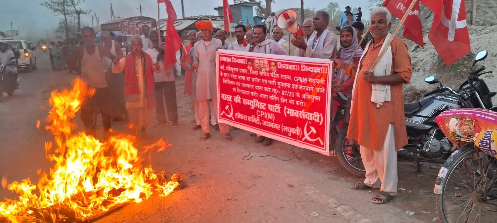 मधुबनी/जयनगर: जिले के जयनगर में भारत की कम्युनिस्ट पार्टी मार्क्सवादी जयनगर के खैरामट(ग) एवं बगही ब्रांच के संयुक्त तत्वाधान में बेला चौक पर जिला शल्य चिकित्सा पदाधिकारी मधुबनी का पुतला फूंक जयनगर अनुमंडलीय अस्पताल में पद स्थापित डॉ० शैलेन्द्र कुमार द्वारा जयनगर थाना कांड संख्या-89/25 झूठा मुकदमा वापस लेने एवं जयनगर थाना कांड संख्या-87/025 के अभियुक्त डॉ० शैलेन्द्र कुमार को गिरफ्तारी करने एवं डॉ० शैलेन्द्र कुमार के अर्जित सम्पति की जांच करने, जयनगर में अवैध फर्जी नर्सिंग होम एवं अस्पताल का जांच कर दोषी के उपर कठोर कार्रवाई करने की मांग को लेकर पार्टी का लगातार कार्यक्रम जारी है।