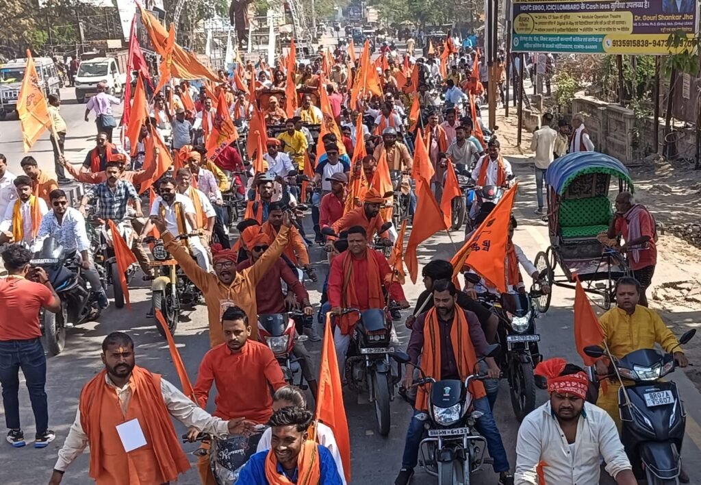 दरभंगा: विश्व हिंदू परिषद एवं बजरंग दल जिला इकाई,दरभंगा के संयुक्त तत्वाधान में वर्ष पति पदा विक्रम संवत 2082 चैत शुक्ल हिंदू नव वर्ष के उपलक्ष में विश्व हिंदू परिषद के सह जिला मंत्री राजीव प्रकाश मधुकर की अध्यक्षता में कार्यक्रम के संयोजक पंकज वाड़ी, सह संयोजक बजरंग दल सुमित कुमार राय के संयुक्त नेतृत्व में और प्रांत गौ रक्षा विभाग के अध्यक्ष विजय झा, प्रांत के गौ रक्षा विभाग के ट्रस्ट के संरक्षक डॉ मृदुल कुमार शुक्ला, विश्व हिंदू परिषद के प्रांतीय उपाध्यक्ष शशि नाथ दास, प्रांत सेवा प्रमुख अभय मिश्रा, जिला अध्यक्ष डॉक्टर जी० एन० लाल, जिला उपाध्यक्ष विपिन दास, जिला मंत्री रिंकू झा, सह जिला मंत्री मुकेश दास, राष्ट्रीय स्वयंसेवक संघ के नगर कारवां राजीव झा, विनय गोस्वामी के संरक्षण में दरभंगा के प्रसिद्ध कर्पूरी चौक मेडिकल ग्राउंड से हिंदू नव वर्ष के उपलक्ष में भव्य और दिव्य बाइक शोभायात्रा निकाली गई।