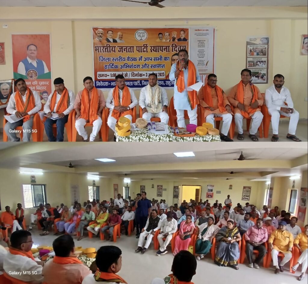 मधुबनी: मधुबनी में भारतीय जनता पार्टी के नया जिला कार्यालय के सभागार में जिला अध्यक्ष प्रभांशु झा की अध्यक्षता और जिला महामंत्री सुबोध कुमार चौधरी के संचालन में 06 अप्रैल को पार्टी का 45वां स्थापना दिवस को लेकर जिला स्तरीय कार्यकारिणी के कार्य को लेकर महत्वपूर्ण बैठक की गई।