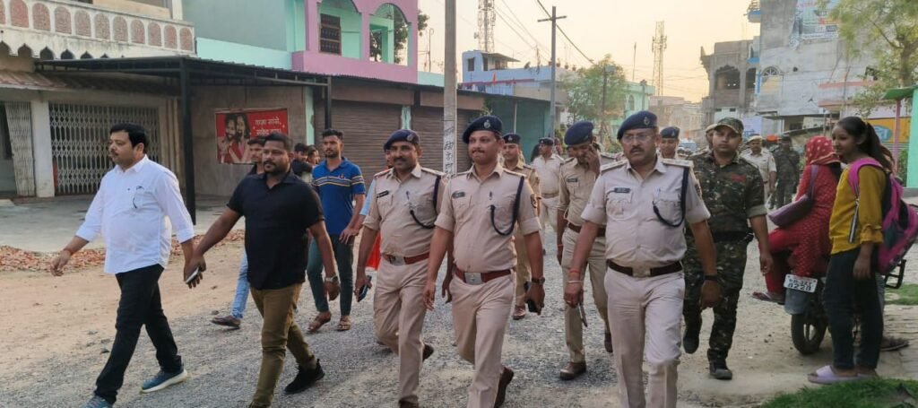 मधुबनी/राजनगर: मधुबनी जिले के राजनगर थाना क्षेत्र मे रामनवमी उत्सव एवं चैती दुर्गा पूजा पर्व अवसर विधि व्यवस्था बनाए शांतिपूर्ण वातावरण मे मनाने को लेकर शांतिपूर्ण एवं सौहार्दपूर्ण वातावरण मनाने जाने को लेकर थाना क्षेत्रों मे एएसपी मनोज राम के नेतृत्व मे राजनगर थाना क्षेत्र मे बीएमपी जवानों के साथ फ्लैग निकाली गईं। जिसमें एएसपी मनोज राम, खजौली अवर निरीक्षक अभय कुमार, थानाध्यक्ष सचिन कुमार, ट्रेफिक डीएसपी सुजीत कुमार, प्रखंड विकास पदाधिकारी प्रभात रंजन, अंचल अधिकारी अभिषेक कुमार, एसआई राधा कृष्ण प्रसाद, प्रशिक्षुक एएसआई अमित कुमार वर्मा, परि पुअनि आरती सिंह सहित अन्य पदाधिकारियों ने थाना क्षेत्र के विभिन्न चौक-चौराहे, गली-मोहल्ले, राजनगर थाना परिसर से सटे बाजार जैसे गाँधी चौक, नेहरू चौक, मुस्लिम मुहल्ला होते हुए पिलखवार, रांटी, रामपट्टी, गोशनगर, कोईलख, भगवानपुर सहित अन्य गली-मुहल्ले, चौक-चौराहे होते मार्च किए।