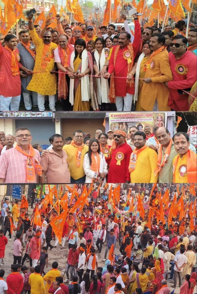 पूरे नगर में जय श्रीराम के जयकारे गूंजते रहे। शोभायात्रा के दौरान जगह-जगह श्रद्धालुओं द्वारा पुष्प वर्षा की गई और श्रद्धा से स्वागत किया गया।