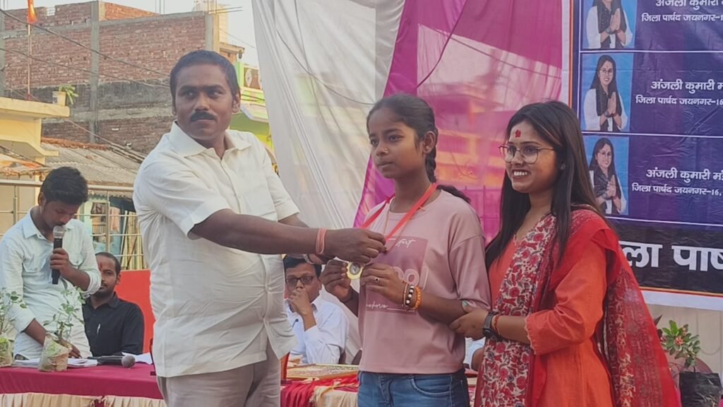 मधुबनी/जयनगर : मधुबनी जिला के जयनगर प्रखंड अंतर्गत जयनगर बस्ती पंचायत स्थित दुर्गा मंदिर परिसर में जिला परिषद सदस्या अंजली कुमारी मंडल के द्वारा मैट्रिक एवं इंटर में सफल हुए विद्यार्थियों तथा बीपीएससी द्वारा नवनिर्वाचित शिक्षकों का सम्मान समारोह कार्यक्रम का आयोजन किया गया।
