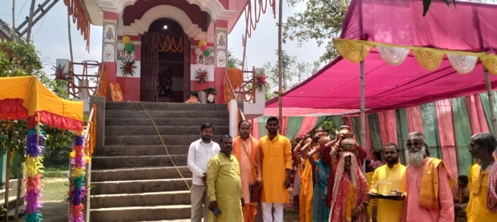 मधुबनी/खुटौना : मधुबनी जिले के खुटौना प्रखंड के कारमेघ मध्य पंचायत के ब्रह्मोत्तरा गांव स्थित बड़की पोखर के पश्चिमी तट पर नव निर्मित श्री संकट मोचन हनुमान मंदिर में हनुमान जयंती के पावन अवसर पर श्री हनुमानजी की प्रतिमूर्ति की विधिवत प्राण प्रतिष्ठा की गई। धार्मिक अनुष्ठान के साथ शुरू हुए इस कार्यक्रम में क्षेत्रवासियों ने उत्साहपूर्वक भाग लिया। प्राण प्रतिष्ठा से पूर्व भव्य कलश शोभायात्रा निकाली गई, जिसमें महिलाओं ने पारंपरिक रंग-बिरंगे परिधानों में सुसज्जित होकर भाग लिया। शोभायात्रा का प्रारंभ वैदिक मंत्रोच्चार एवं विधिवत पूजा-अर्चना के साथ हुआ। पंडितों द्वारा कलशों की स्थापना कर धार्मिक अनुष्ठान की शुरुआत की गई। इस मौके पर भजन-कीर्तन, नाम संकीर्तन एवं अष्टयाम यज्ञ का आयोजन किया गया, जो रविवार संध्या तक जारी रहेगा। श्रद्धालु भक्ति भाव से यज्ञशाला में जुटे हुए हैं। वहीं, साधु-संतों एवं आगंतुक श्रद्धालुओं के लिए भण्डारे का आयोजन किया गया है, जिसमें सभी के लिए प्रसाद की व्यवस्था की गई है। आयोजन से पूरे क्षेत्र में भक्तिमय वातावरण व्याप्त हो गया है।