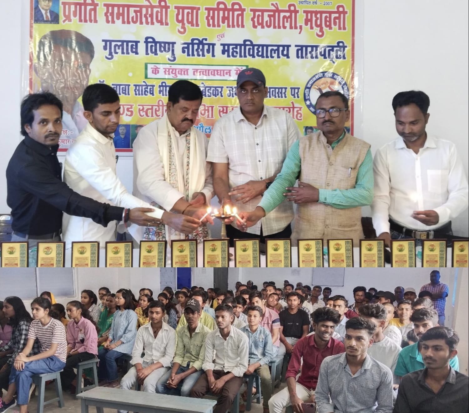 मधुबनी जिले के खजौली प्रखंड में प्रगति समाजसेवी युवा समिति,खजौली एवं गुलाब विष्णु नर्सिंग महाविद्यालय,तारापट्टी,खजौली के संयुक्त तत्वावधान में गुलाब विष्णु नर्सिंग महाविद्यालय तारापट्टी में सोमवार को प्रखंड स्तरीय प्रतिभा सम्मान समारोह का आयोजन किया गया।