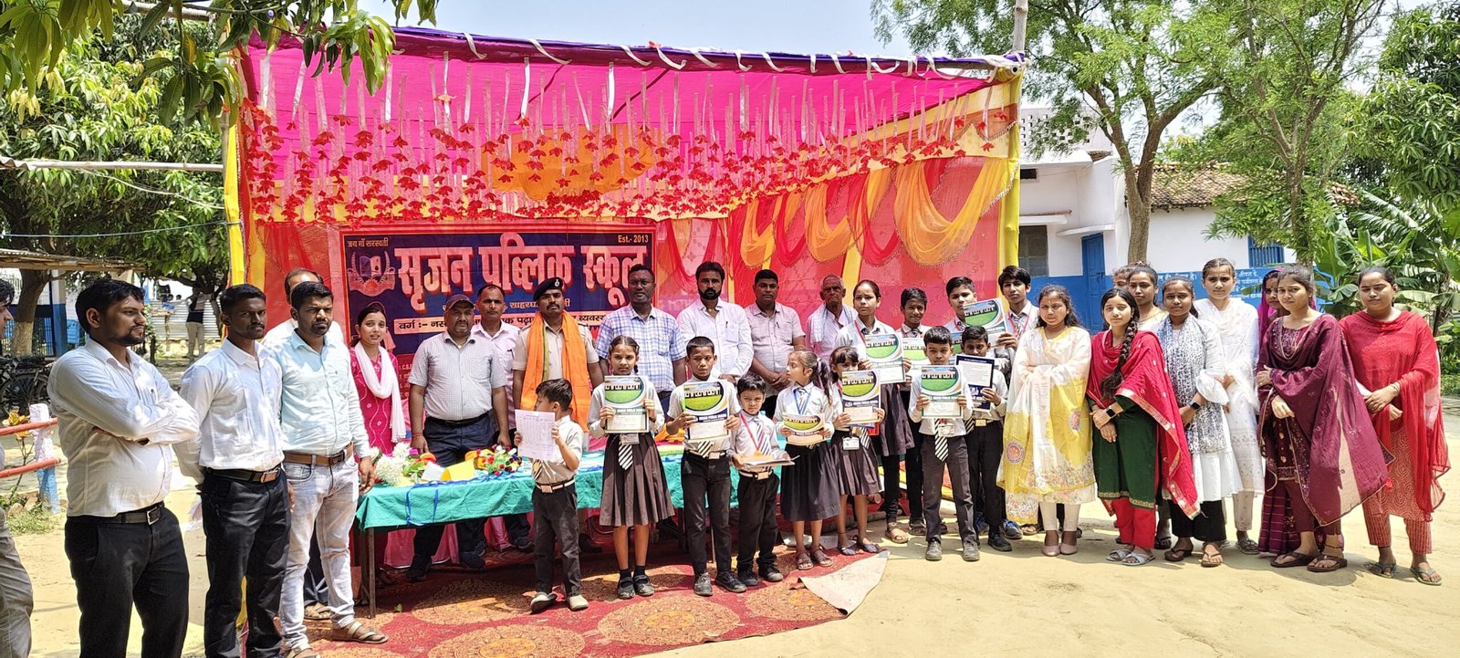 कार्यक्रम की शुरुआत अतिथियों को पाग और गमछा से सम्मानित कर किया गया। तत्पश्चात स्कूल में बेहतर प्रदर्शन करने वाले कक्षा एक से नमन कुमार, दूसरी कक्षा में अंशी कुमारी, तीसरी में रणवीर कुमार, चौथी में विवेक कुमार, पांचवीं में सागर कुमार और छठी में साक्षी कुमारी ने प्रथम स्थान प्राप्त किया है। उक्त सभी बच्चों को बीडीओ ने मेडल, अंक पत्र, कॉपी और पेन देकर प्रोत्साहित किया। इस दौरान स्कूल के कुल तीन सौ बच्चों को पुरस्कृत किया गया। बीडीओ ने बच्चों को संबोधित करते हुए कहा कि इस तरह के कार्यक्रम से बच्चों में पढ़ाई को लेकर कंप्टीशन की भावना जागृत होती है, जो छात्रों को और संघर्षशील बनाता है। उन्होंने खास पर अभिभावकों से अपील करते हुए कहा कि बच्चों को स्कूल भेजने के साथ साथ घर पर भी उनसे दोस्ताना व्यव्हार रखें, ताकि उनके साथ होने वाली समस्याओं से आपको अवगत करा पाएं। वही, स्कूल के संस्थापक कृष्ण कुमार यादव ने बताया कि आज कक्षा नर्सरी से लेकर आठवीं तक के स्कूल द्वारा ली गई वार्षिक परीक्षा परिणाम घोषित किया गया है। उसी उपलक्ष्य में बच्चों के सम्मान में यह कार्यक्रम आयोजित की गई है, ताकि दूसरे बच्चों में पढ़ाई को लेकर नई ऊर्जा मिले। स्कूल की खासियत को बताते हुए कहा कि स्कूल में डिजिटल क्लास रूम, कंप्यूटर शिक्षा और खेल ग्राउंड की भी व्यवस्था के साथ साथ प्रशिक्षित कुशल शिक्षकों की टीम को रखा गया है।