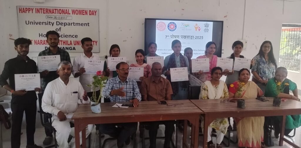 दरभंगा : गर्भाधान से प्रारंभिक 1000 दिनों तक का काल बच्चों के सर्वांगीण विकास में सर्वाधिक महत्वपूर्ण होता है। गर्भावस्था में माता को अधिक नमकीन, खट्टा या तीता पदार्थों के सेवन से बचना चाहिए। स्वस्थ माता से ही स्वस्थ बच्चे एवं खुशहाल समाज का निर्माण संभव है। यदि गृहणियां जागरूकता पूर्वक खाना बनाए, तो कम खर्चे में भी पोषण युक्त भोजन तैयार हो सकता है। उक्त बातें स्नातकोत्तर एनएसएस इकाई, विश्वविद्यालय गृहविज्ञान विभाग तथा डॉ० प्रभात दास फाउंडेशन, दरभंगा के संयुक्त तत्वावधान में गत आठ अप्रैल से प्रारंभ पोषण पखवाड़ा के समापन समारोह में मुख्य वक्ता के रूप में राजकीय महारानी रामेश्वरी भारतीय चिकित्सा विज्ञान संस्थान, दरभंगा के प्राध्यापक एवं पूर्व प्रभारी प्राचार्य डॉ० शंभू शरण ने कही। उन्होंने गर्भावस्था के दौरान 9 महीनों में माता द्वारा लिए जाने वाले उचित भोजनों की विस्तार से चर्चा करते हुए पीपीटी के माध्यम से कहा कि फास्ट एवं जंक फूड में पोषक तत्व न्यूनतम होता है। इनमें नमक, तेल, फैट आदि अधिक होने के कारण ये मोटापा बढ़ाते हैं। गलत खानपान के कारण विश्व में 12% बच्चे तथा कुल आबादी के 40% व्यक्ति मोटे हैं। अभिभावकों की जिम्मेदारी है कि उनके बच्चे उच्च पोषक एवं संतुलित भोजन ही ग्रहण करें। आयुर्वेद के अनुसार 16 वर्षों तक बच्चों के बल एवं बुद्धि का सर्वाधिक विकास होता है। डब्लूएचओ ने भारतीय दाल-चावल-सब्जी तथा खिचड़ी को पोषण की दृष्टि से श्रेष्ठ भोजन माना है।