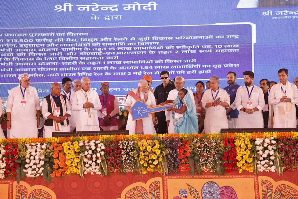 कार्यक्रम के दौरान प्रधानमंत्री ने पीएम आवास योजना के तहत लाभार्थियों को स्वीकृति पत्र और घरों की चाबियां सौंपीं। उन्होंने बताया कि बिहार के 80 हजार ग्रामीण और 1 लाख शहरी परिवारों को नए घर दिए जा रहे हैं। पीएम मोदी ने प्रधानमंत्री ग्रामीण आवास योजना के तहत 15 लाख लाभार्थियों को स्वीकृति पत्र एवं दस लाख लाभार्थियों को किस्त जारी की। साथ ही डीएवाई-एनआरएलएम के तहत दो लाख स्वयं सहायता समूहों के विकास के लिए वित्तीय सहायता और प्रधानमंत्री आवास योजना-शहरी के तहत एक लाख लाभार्थियों को किस्त का हस्तांतरण भी किया। इसके अलावा उन्होंने प्रधानमंत्री ग्रामीण आवास योजना एवं शहरी के अंतर्गत 1.54 लाख लाभार्थियों को घर की चाबी प्रदान कर उनका गृह प्रवेश भी कराया।