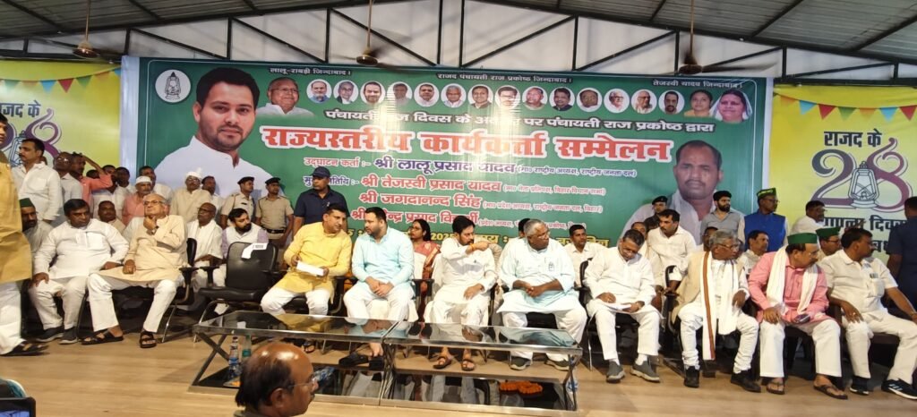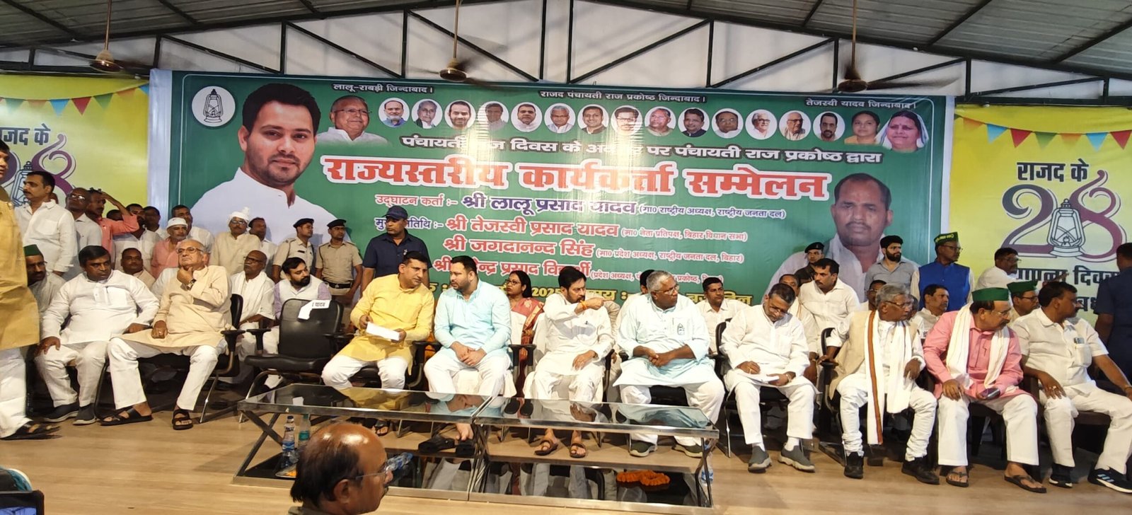बिहार/पटना : बिहार प्रदेश राष्ट्रीय जनता दल के राज्य कार्यालय के कर्पूरी सभागार में पंचायती राज दिवस के अवसर पर बिहार प्रदेश राष्ट्रीय जनता दल पंचायती राज प्रकोष्ठ की ओर से विशाल कार्यकर्ता सम्मेलन आयोजित किया गया। इस कार्यक्रम की अध्यक्षता पंचायती राज प्रकोष्ठ के प्रदेश अध्यक्ष महेन्द्र प्रसाद विद्यार्थी ने की, जबकि संचालन प्रदेश उपाध्यक्ष देवकुमार यादव ने किया। बतौर मुख्य अतिथि इस कार्यक्रम में नेता प्रतिपक्ष तेजस्वी प्रसाद यादव उपस्थित थे।