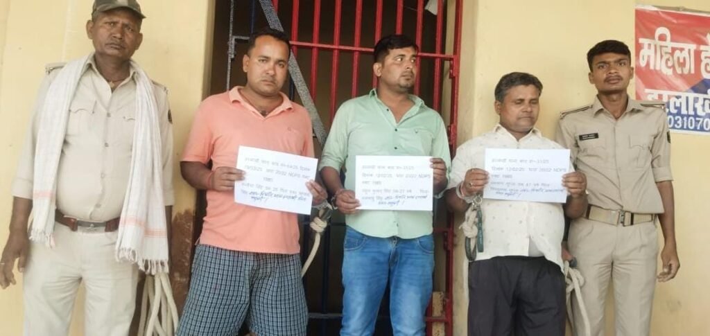 मधुबनी जिले के हरलाखी थाना पुलिस ने प्रतिबंधित नशीली दवाएं बेचने के आरोप में पिपरौन गांव के ही एक साथ तीन युवकों को गिरफ्तार किया है। ये गिरफ्तारियां एनडीपीएस एक्ट के तहत दो अलग अलग मामलों में की गई हैं। पुलिस ने आरोपियों को न्यायिक हिरासत में भेज दिया है। पहली कार्रवाई थाना कांड संख्या-31/2025 के तहत की गई, जिसमें राहुल कुमार सिंह व लक्ष्मण गुप्ता दोनों के विरुद्ध थाने में प्राथमिकी दर्ज की गई थी। वहीं दूसरी कार्रवाई थाना कांड संख्या-64/2025 के तहत की गई, जिसमें कन्हैया कुमार सिंह को गिरफ्तार किया गया। तीनों के ऊपर प्रतिबंधित नशीली दवा बेचने का आरोप है। जानकारी के अनुसार बेनीपट्टी एसडीपीओ निशिकांत भारती के निर्देश पर थाने की प्रशिक्षु एसआई आदित्य कुमार ने की।