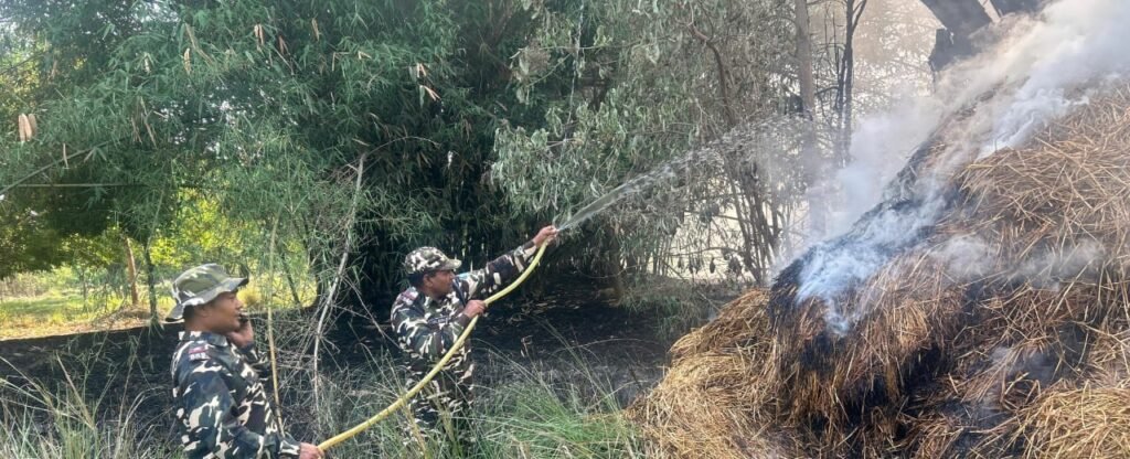 मधुबनी/जयनगर : मधुबनी जिले में भारत-नेपाल सीमा पर तैनात 48वी वाहिनी, एसएसबी, जयनगर मुख्यालय के हरने कैंप स्थित डी समवाय से करीब 200 मीटर भारत-नेपाल सीमा की दिशा में, सीमा स्तंभ संख्या-280/23 से भारत की ओर, एसएसबी कैंप हरने से चेक पोस्ट संख्या-49 को जाने वाली सड़क के उत्तर दिशा में पराल से बने मवेशियों के घर में आग लग गई। घटना की सूचना मिलते ही 48वीं वाहिनी, सशस्त्र सीमा बल, जयनगर की सीमा चौकी हरने के जवानो ने अग्निशमन यंत्रों के साथ मौके पर पहुंच कर अग्निशमन विभाग, पुलिस विभाग तथा ग्रामीणों के सहयोग से आग पर सफलतापूर्वक काबू पाया गया।प्रारंभिक जांच में किसी प्रकार की जनहानि या पशुहानि की सूचना नहीं मिली है। आग जिस घर में लगी, वह राज कुमार यादव (पिता का नाम-राम बालक यादव), निवासी ग्राम-हरने का बताया गया है। यह घर मवेशी बांधने एवं घास/पराल रखने हेतु उपयोग में लिया जाता था। आग लगने के कारणों की पुष्टि अब तक नहीं हो पाई है। मामले की जांच जारी है।