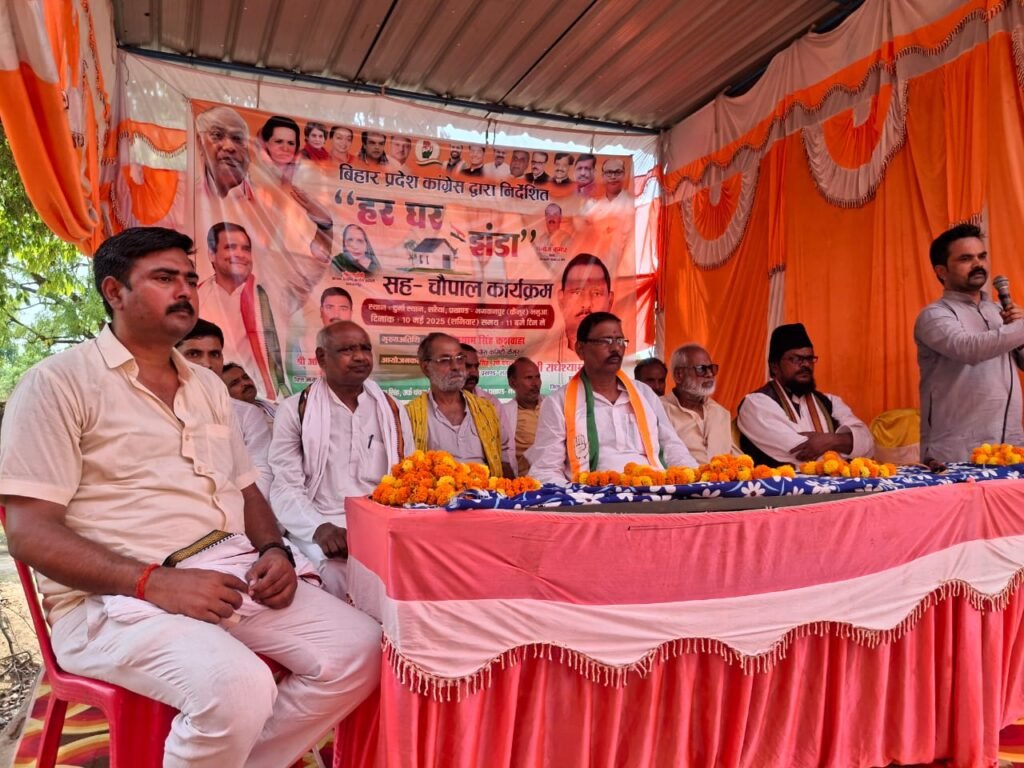 शनिवार की दोपहर कैमूर जिले के भगवानपुर प्रखंड अंतर्गत सरैयाँ पंचायत मुख्यालय स्थित मां दुर्गा स्थान पर कांग्रेस ने हर-घर झंडा अभियान के तहत चौपाल का आयोजन किया। पार्टी के जिलाध्यक्ष सह मुख्य अतिथि राधेश्याम सिंह कुशवाहा के मौजूदगी में आयोजित हुए इस कार्यक्रम में सैकड़ों की संख्या में महिलाओं एवं पुरुषों ने हिस्सा लिया। चौपाल कार्यक्रम की अध्यक्षता सोनरा देवी तथा संचालन कांग्रेस के पूर्व प्रखंड अध्यक्ष अशोक पांडेय ने की।