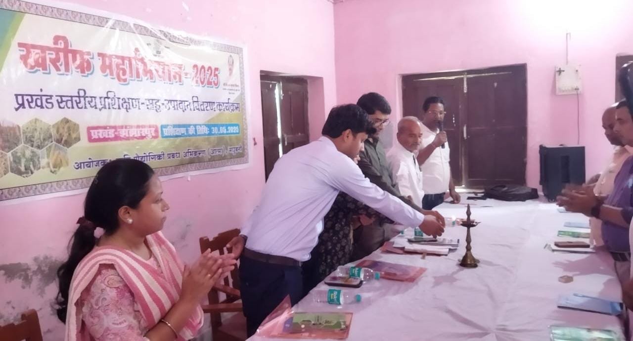 मधुबनी जिले के झंझारपुर प्रखंड मुख्यालय परिसर स्थित ई-किसान भवन परिसर में खरीफ महा अभियान 2025 के तहत प्रखंड स्तरीय खरीफ महोत्सव सह कर्मशाला व उपादान वितरण कार्यक्रम का आयोजन किया गया।