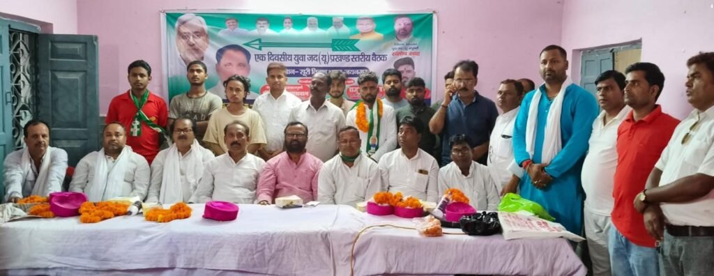 इस मौके पर मुख्य अतिथि पूर्व जिला प्रभारी डॉ राम प्रवेश पासवान ने मुख्यमंत्री नीतीश कुमार द्वारा किये गये विकास कार्यों और उनकी जनहितैषी नीतियों की जानकारी जन-जन तक पहुंचाने की अपील की। उन्होंने कहा कि शिक्षा, स्वास्थ्य, कृषि एवं अन्य क्षेत्र में जो विकास कार्य हुए हैं, उनकी जानकारी हर वर्गों के लोगों तक पहुंचाएं। आप सभी युवा अनुशासन में रहकर संगठन के प्रति कार्य करें और संगठन को मजबूती प्रदान करें। युवा जदयू जिलाध्यक्ष संतोष साह ने कहा कि हम पार्टी को और अधिक मजबूत करने और संगठन विस्तार के लिए लगातार कार्य कर रहे हैं। बैठक में प्रखण्ड कमेटी से लेकर पंचायत स्तर तक संगठन को मजबूत करने का संकल्प लिया गया।