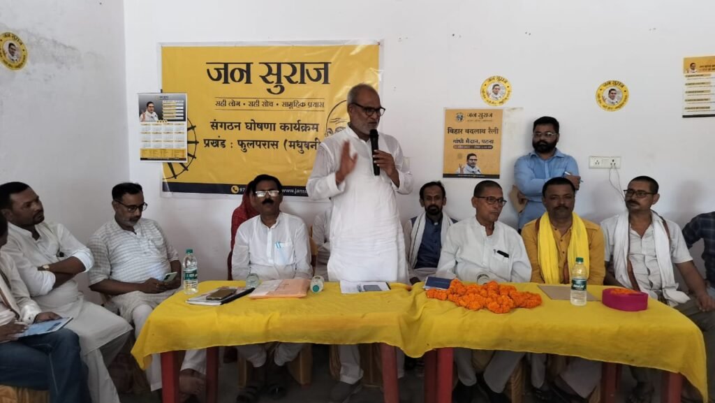 प्रेसवार्ता को संबोधित करते हुए सुभाष कुशवाहा ने कहा कि जन सुराज बिहार की जनता के लिए एक बेहतर विकल्प के रूप में तैयार है। जन सुराज की सोच अधिक-से-अधिक लोगों तक पहुंचाने पर जोर दिया जा रहा है। आगामी चुनाव को देखते हुए कार्यकर्ताओं को बूथ कमिटी बनाने और मजबूत करने पर जोड़ दिया जा रहा है। उन्होंने मीडिया के माध्यम से फुलपरास के लोगों से आग्रह किया कि इस बार जाति से ऊपर उठकर अपने बच्चों के लिए वोट करें। आपने बच्चों को अच्छी शिक्षा और रोजगार के लिए वोट करें। बैठक में प्रदेश संगठन महासचिव सुभाष कुशवाहा समेत जिला सचिव शौकत अली, जिला अभियान समिति राम कुमार मंडल, अनुमंडल सचिव विनीत झा, अनुमंडल उपाध्यक्ष मो. शाहनवाज, अनुमंडल महिला अध्यक्ष कल्पना मिश्रा, विधानसभा प्रभारी जागेश्वर मोची, अनुमंडल युवा अध्यक्ष रौशन रंजन, राज्य समिति सदस्य मनोज बिहारी, विधानसभा प्रभारी सुजनकांत ठाकुर समेत सैकड़ों कार्यकर्ता शामिल हुए।