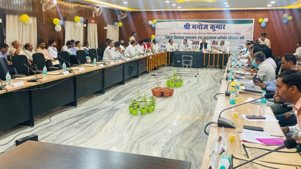 जिले के माँ मुंडेश्वरी सभागार में मंगलवार को दिशा (जिला विकास समन्वय एवं अनुश्रवण समिति) की एक महत्वपूर्ण बैठक का आयोजन किया गया। बैठक की अध्यक्षता सासाराम लोकसभा क्षेत्र के सांसद मनोज कुमार ने किया। इस बैठक में बक्सर सांसद श्री सुधाकर सिंह, जिला परिषद अध्यक्ष, नगर परिषद अध्यक्ष, तथा जिले के अन्य जनप्रतिनिधि एवं जिला पदाधिकारी, उप विकास आयुक्त, अपर समाहर्ता सहित सभी वरीय पदाधिकारी उपस्थित थे। उक्त बैठक का उदेश्य जिले में केंद्र और राज्य सरकार द्वारा संचालित योजनाओं की प्रगति की समीक्षा करना।विकास कार्यों में आ रही अड़चनों की पहचान और समाधान करना।