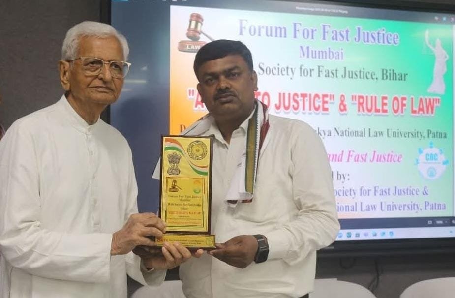 बिहार के सीतामढ़ी के बाजपट्टी निवासी वरिष्ठ अधिवक्ता संतोष कुमार को आज एक विशेष सम्मान से सम्मानित किया गया। उन्हें फोरम फॉर फास्ट जस्टिस, मुंबई द्वारा आयोजित एक कार्यक्रम में “अक्सेस टू जस्टिस एंड रूल ऑफ लॉ” विषय पर आयोजित समारोह में हाई कोर्ट एवं सिविल कोर्ट, पटना में गरीब एवं बेसहारा लोगों के लिए निःशुल्क कानूनी सहायता प्रदान करने की प्रतिबद्धता के लिए सम्मानित किया गया।