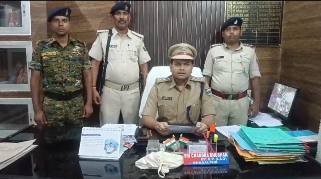 बरामद वस्तुओं में एक देसी कट्टा और कुल 05 जिंदा कारतूस शामिल हैं। जो अभियुक्तों की आपराधिक गतिविधियों की पुष्टि करते हैं। गिरफ्तार किए गए सभी आरोपी ग्राम खेड़िया, थाना अकबरनगर, जिला भागलपुर के निवासी हैं छापेमारी और गिरफ्तारी अभियान का नेतृत्व पुलिस उपाधीक्षक (विधि-व्यवस्था) श्री चंद्रभूषण ने किया। इस कार्रवाई में थानाध्यक्ष रोहित तिवारी, सहायक थानाध्यक्ष राकेश कुमार, एवं थाना बल के अन्य अधिकारी – रोहित कुमार, रमाशंकर कुमार, और प्रेम कुमार शामिल रहे पुलिस द्वारा की गई त्वरित और सटीक कार्रवाई से क्षेत्र में अपराधियों के मनोबल पर करारा प्रहार हुआ है पुलिस प्रशासन ने स्पष्ट किया है कि अवैध हथियार रखने वालों के खिलाफ इसी तरह की कठोर कार्रवाई आगे भी जारी रहेगी।