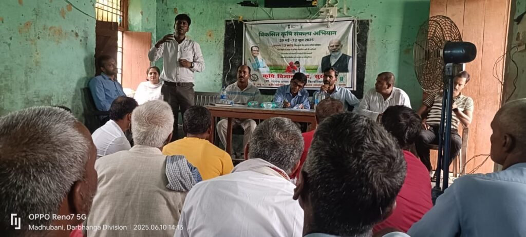 विकसित कृषि संकल्प अभियान के तहत मंगलवार को मधुबनी जिले के लदनियां प्रखंड के किसानों को पिपराही गांव के एक निजी स्कूल के परिसर में कृषि विज्ञान केंद्र सूखेत के वरिष्ठ वैज्ञानिकों ने संबोधित किया। इसमें किसानों को फसलों से सम्बधित समस्या व समाधान विषय पर जानकारी दी गई।
