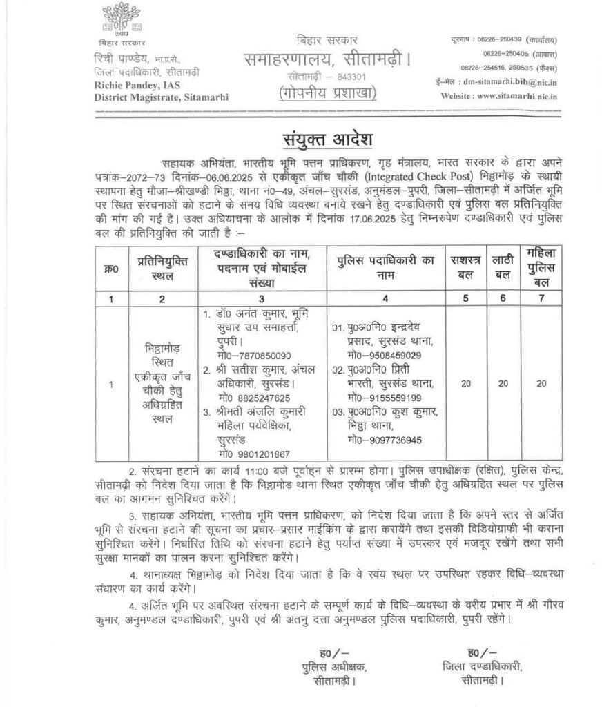 भिट्ठामोर इंटीग्रेटेड चेक पोस्ट की स्थाई स्थापना की दिशा में बड़ा कदम, अतिक्रमण हटाने का आदेश जारी