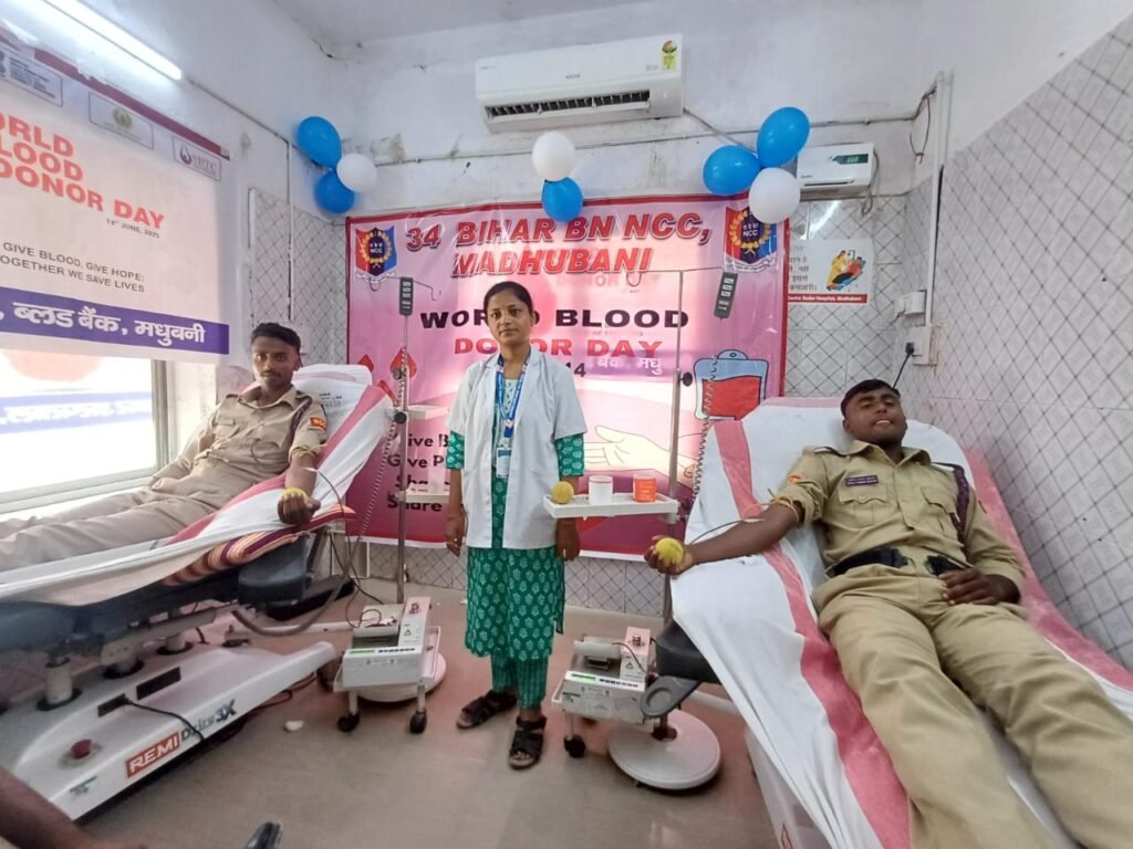 विश्व रक्तदाता दिवस के अवसर पर शनिवार को सदर अस्पताल स्थित ब्लडबैंक में ब्लड डोनेशन कैंप का आयोजन किया गया। इसमें दर्जनों रक्त वीरो ने रक्तदान किया। शिविर में आधी आबादी की भूमिका भी सराहनीय रहा। शनिवार को सदर अस्पताल स्थित ब्लड बैंक में एनसीसी कैडेट्स द्वारा 15 युनिट, सखी बहिनपा मैथिलानी समूह द्वारा 20 युनिट समेत अन्य सामाजिक संस्थाओं द्वारा कुल 70 युनिट रक्त संग्रहण किया गया।