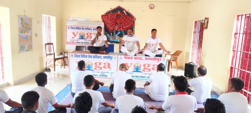 अंतर्राष्ट्रीय योग दिवस 2025 के अवसर पर मंडल कारा समस्तीपुर में जिला विधिक सेवा प्राधिकार समस्तीपुर,आशा सेवा संस्थान एवं मुस्कान जिला नशा मुक्ति केंद्र समस्तीपुर के सहयोग से अंतर्राष्ट्रीय योग दिवस पर योग शिविर का आयोजन जेल अधीक्षक प्रशांत कुमार ओझा के मार्गदर्शन में आयोजित किया गया।